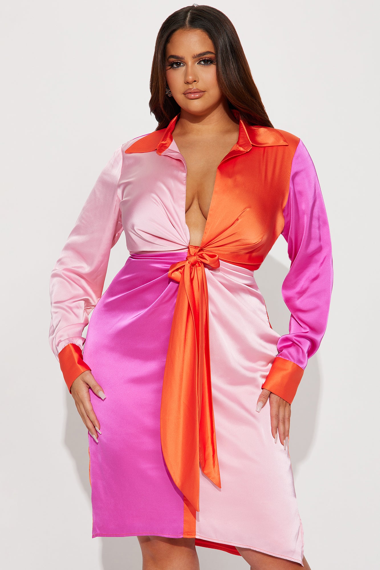 Beauty Secrets Satin Midi Dress - Pink/combo