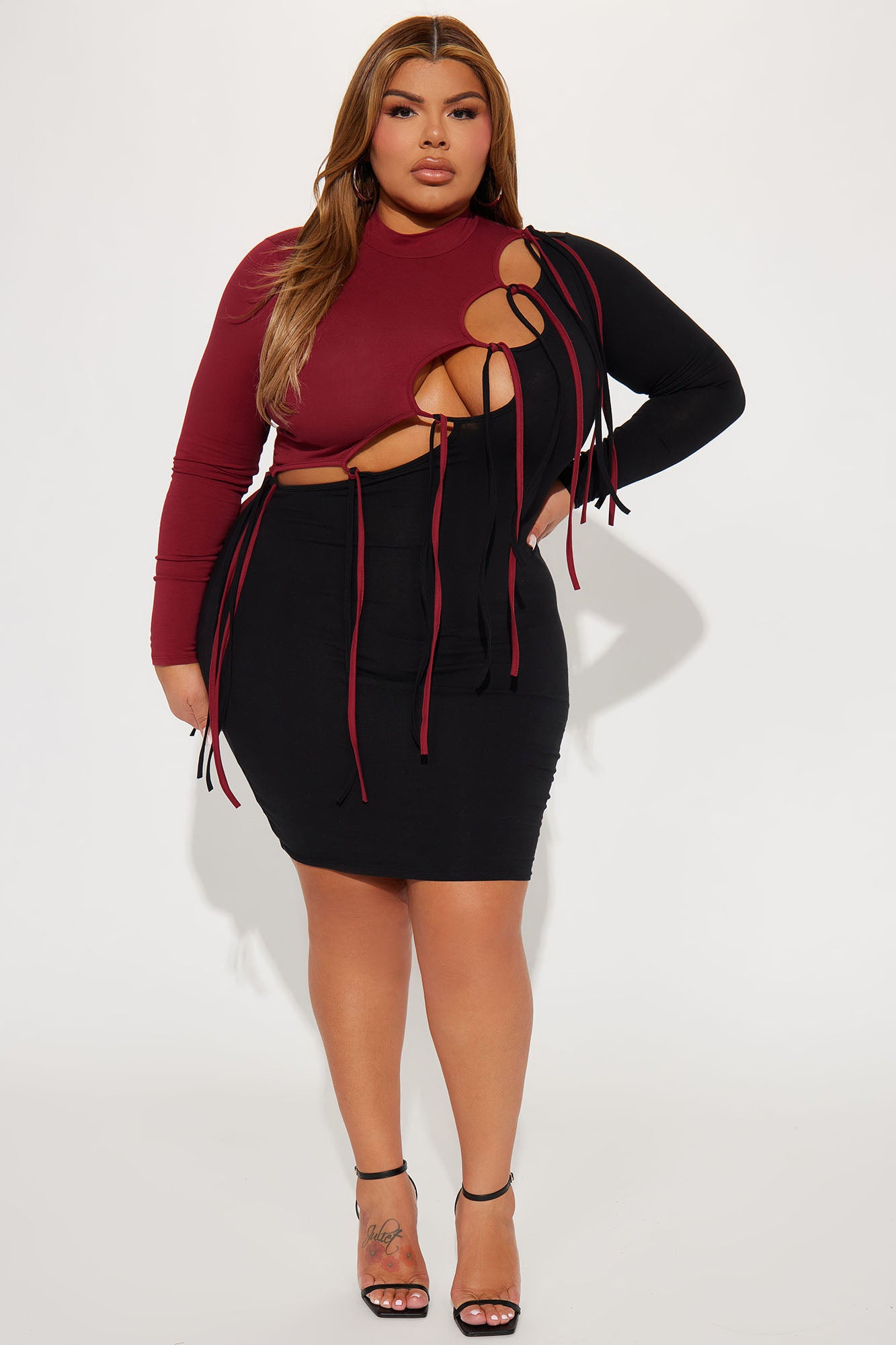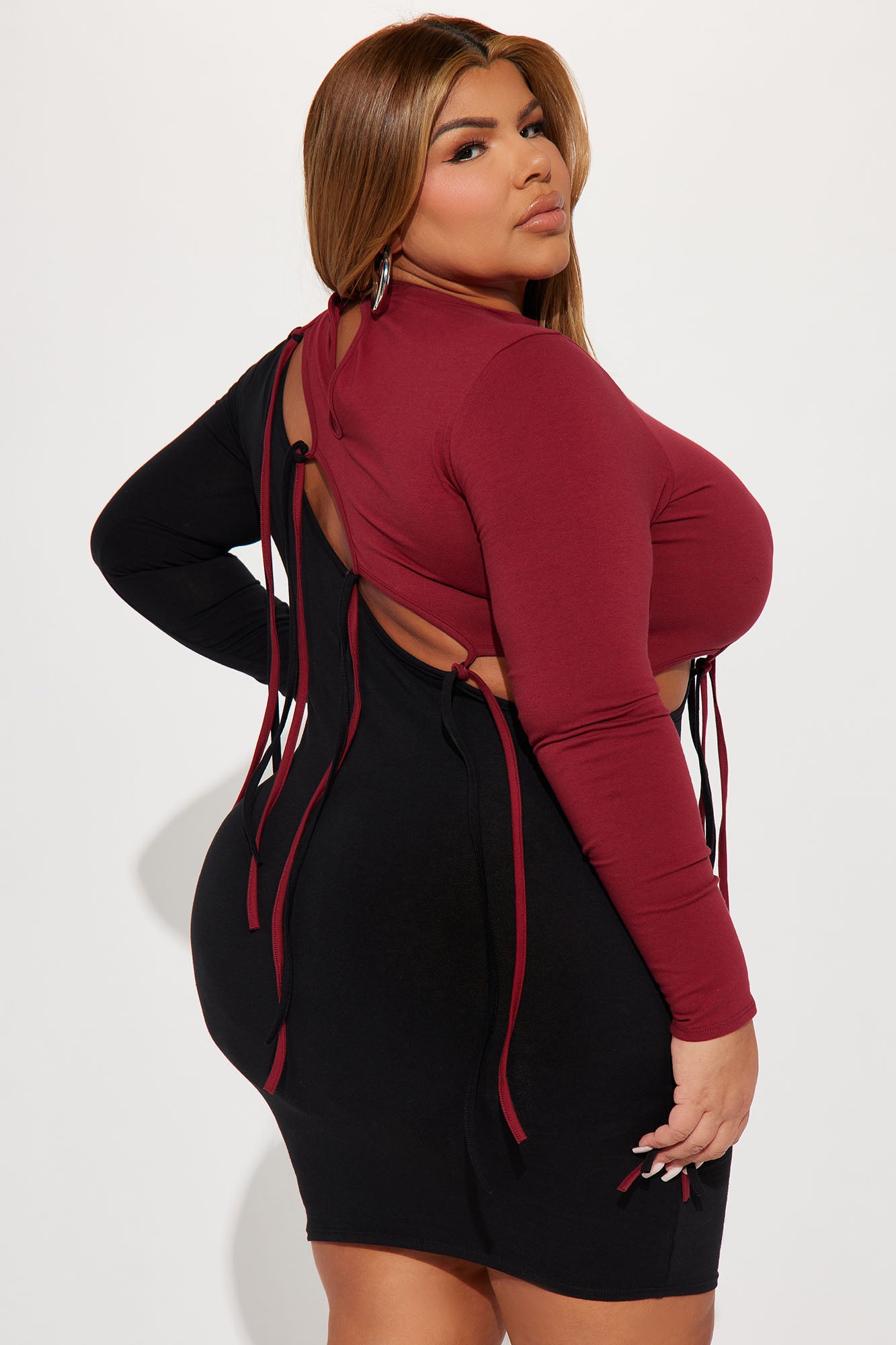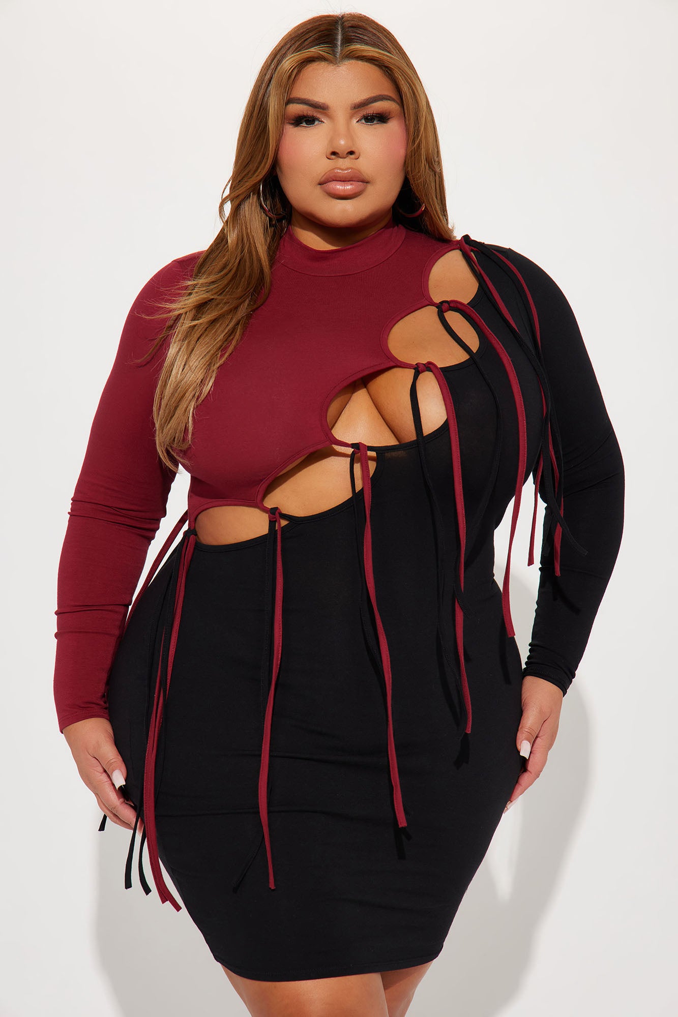 Dawsyn Distressed Mini Dress - Burgundy/combo