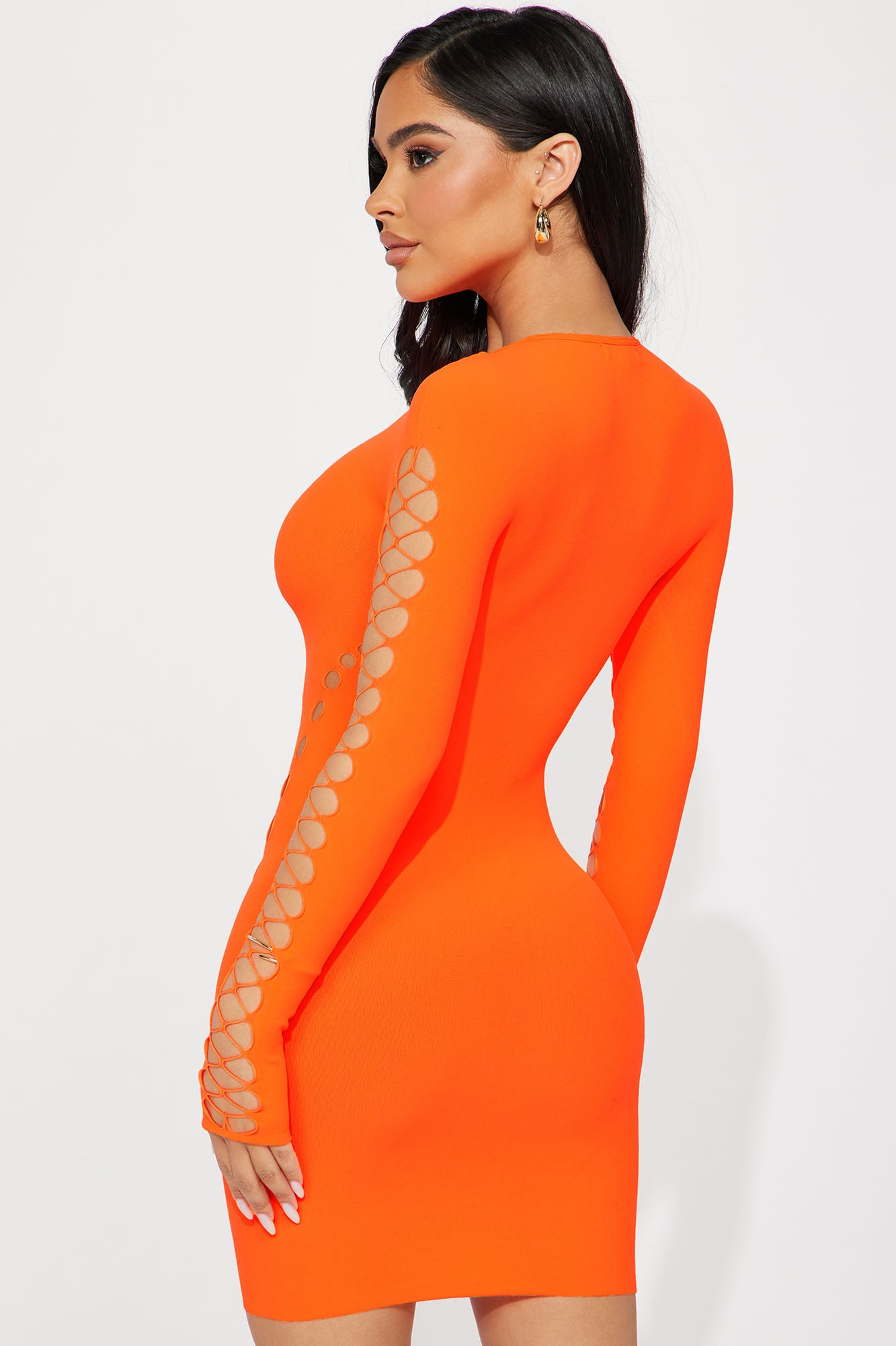 Flashing Lights Seamless Mini Dress - Neon Orange