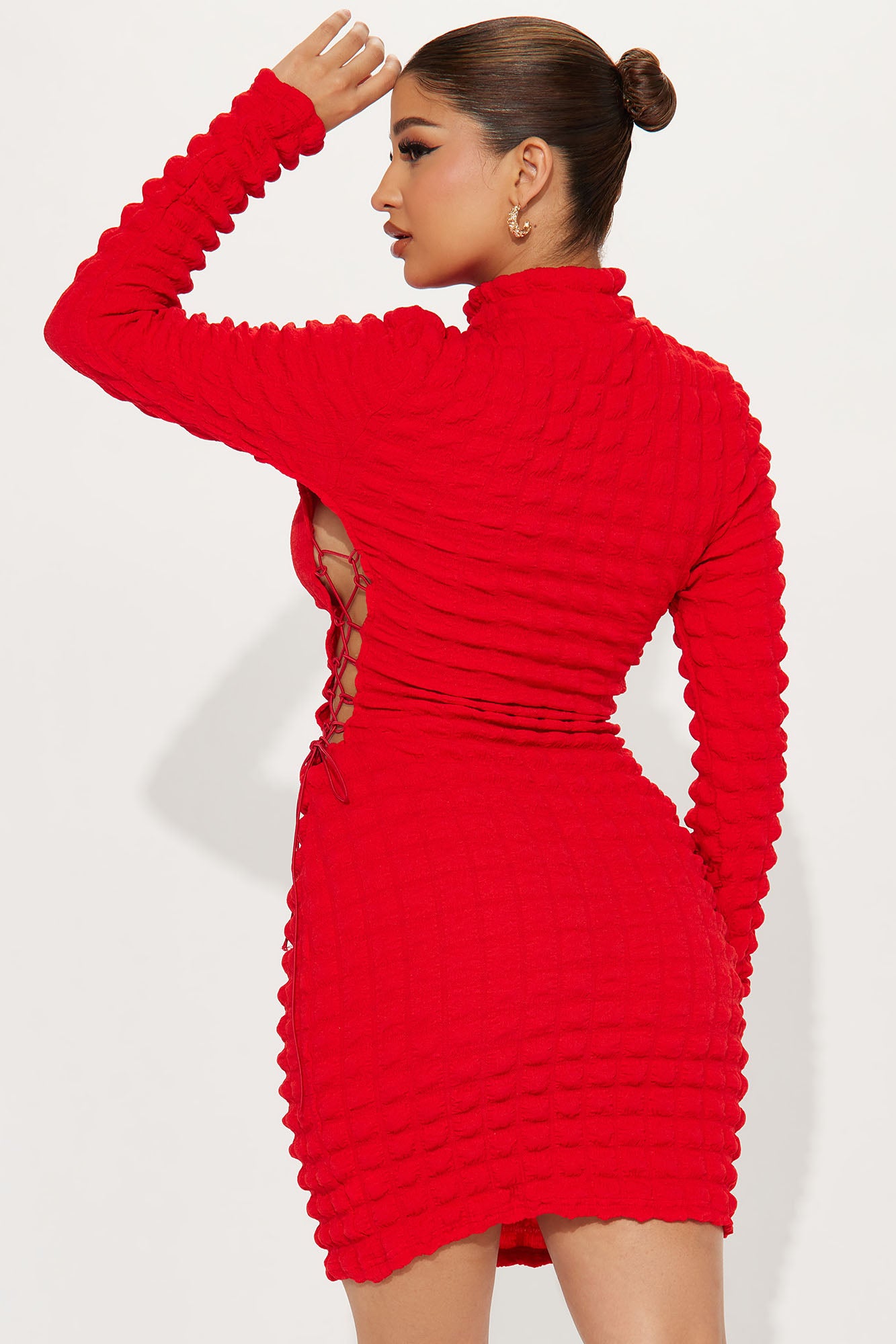 Unexpected Kindness Honeycomb Mini Dress - Red