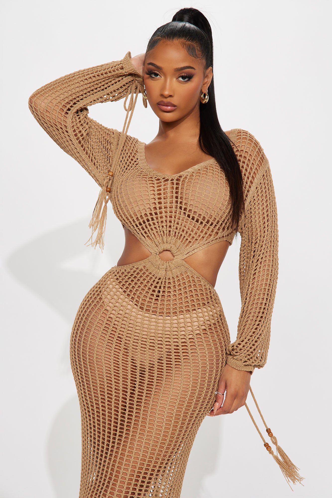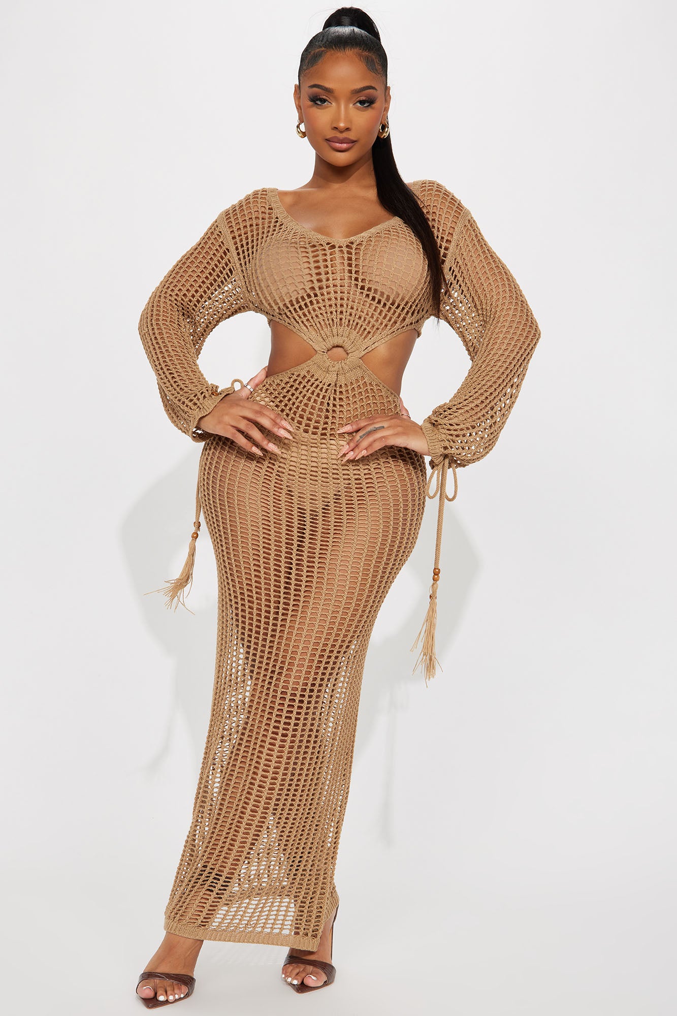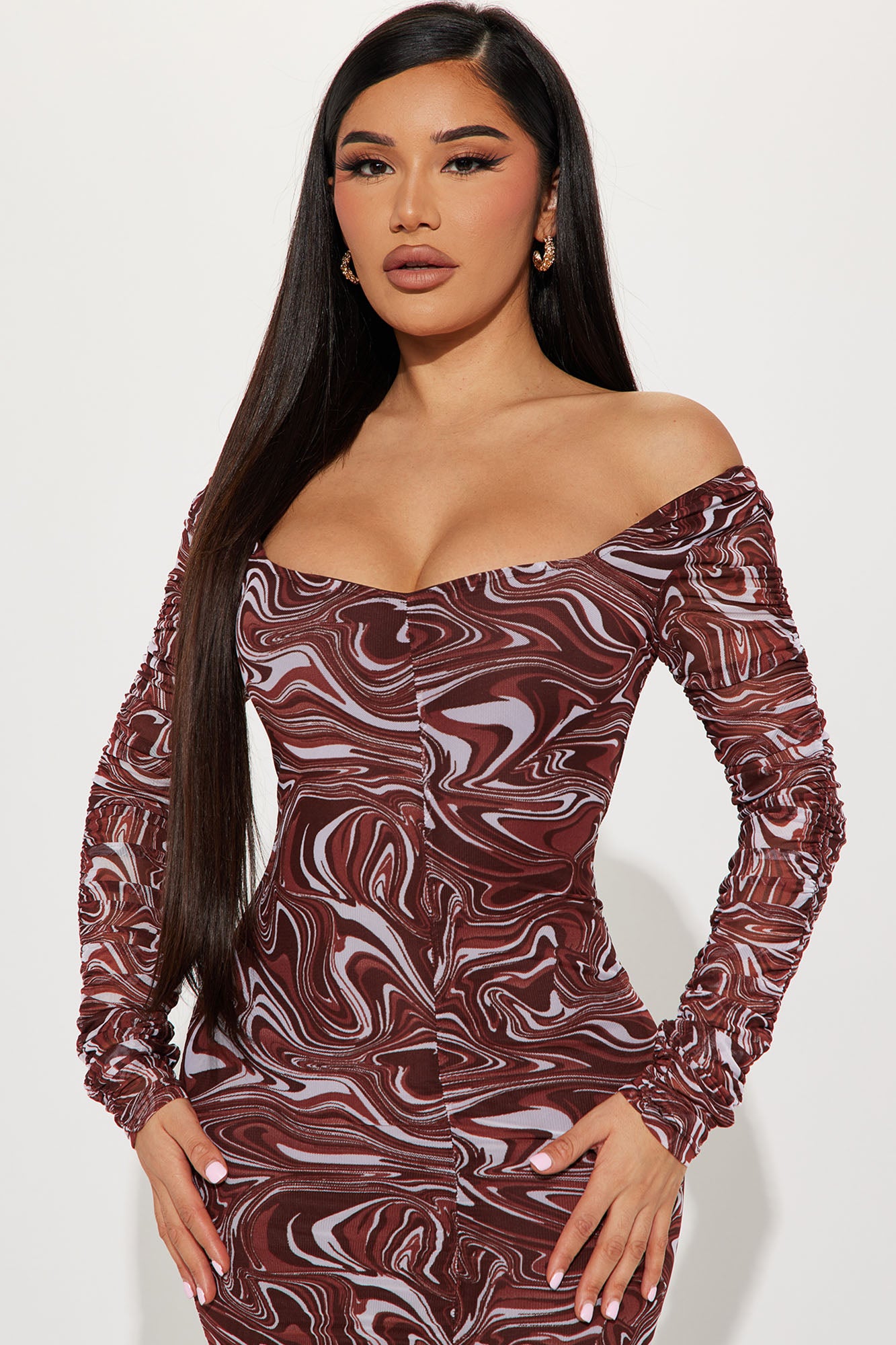 Swirl Into Motion Mesh Midi Dress - Brown/combo