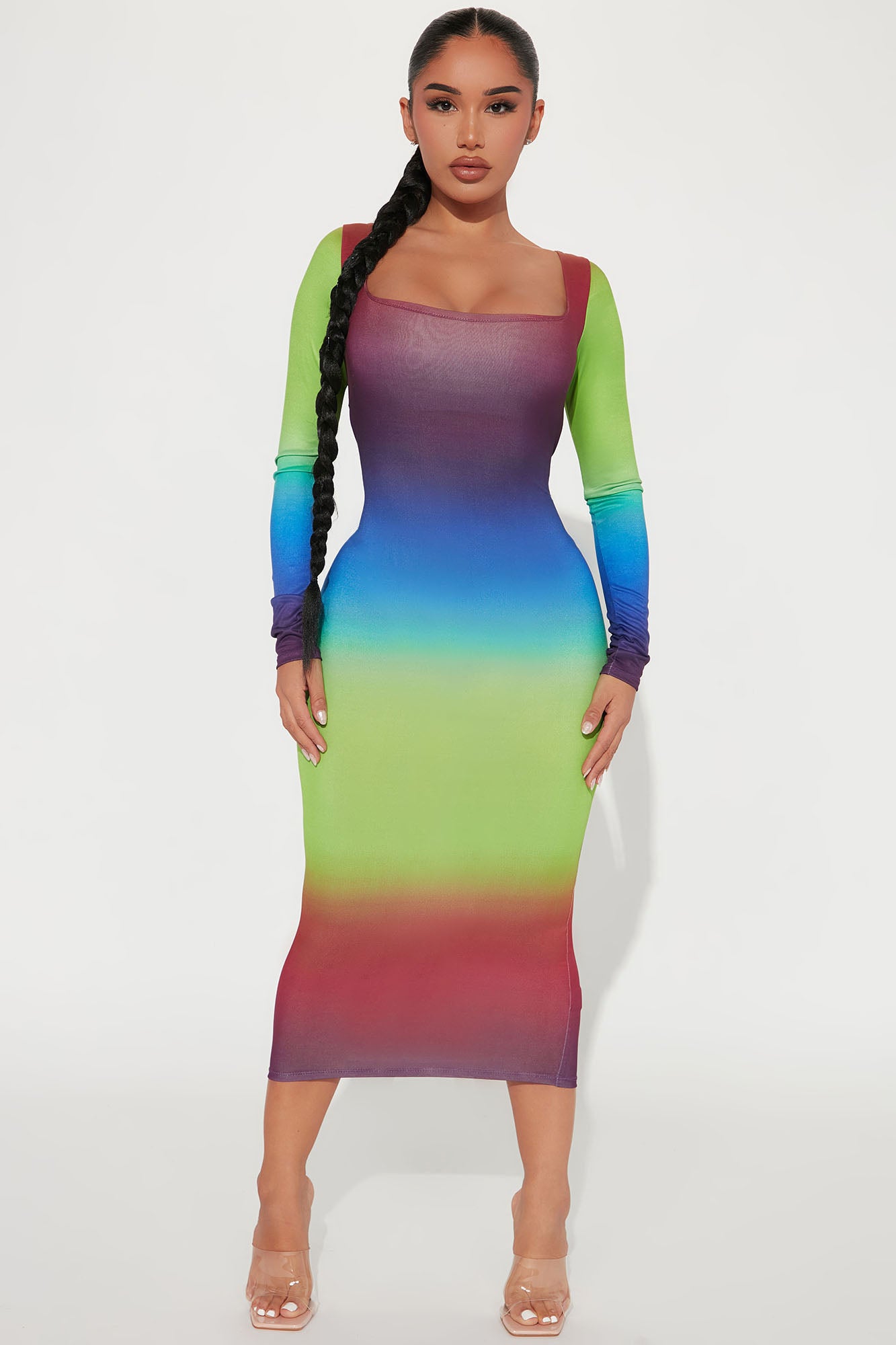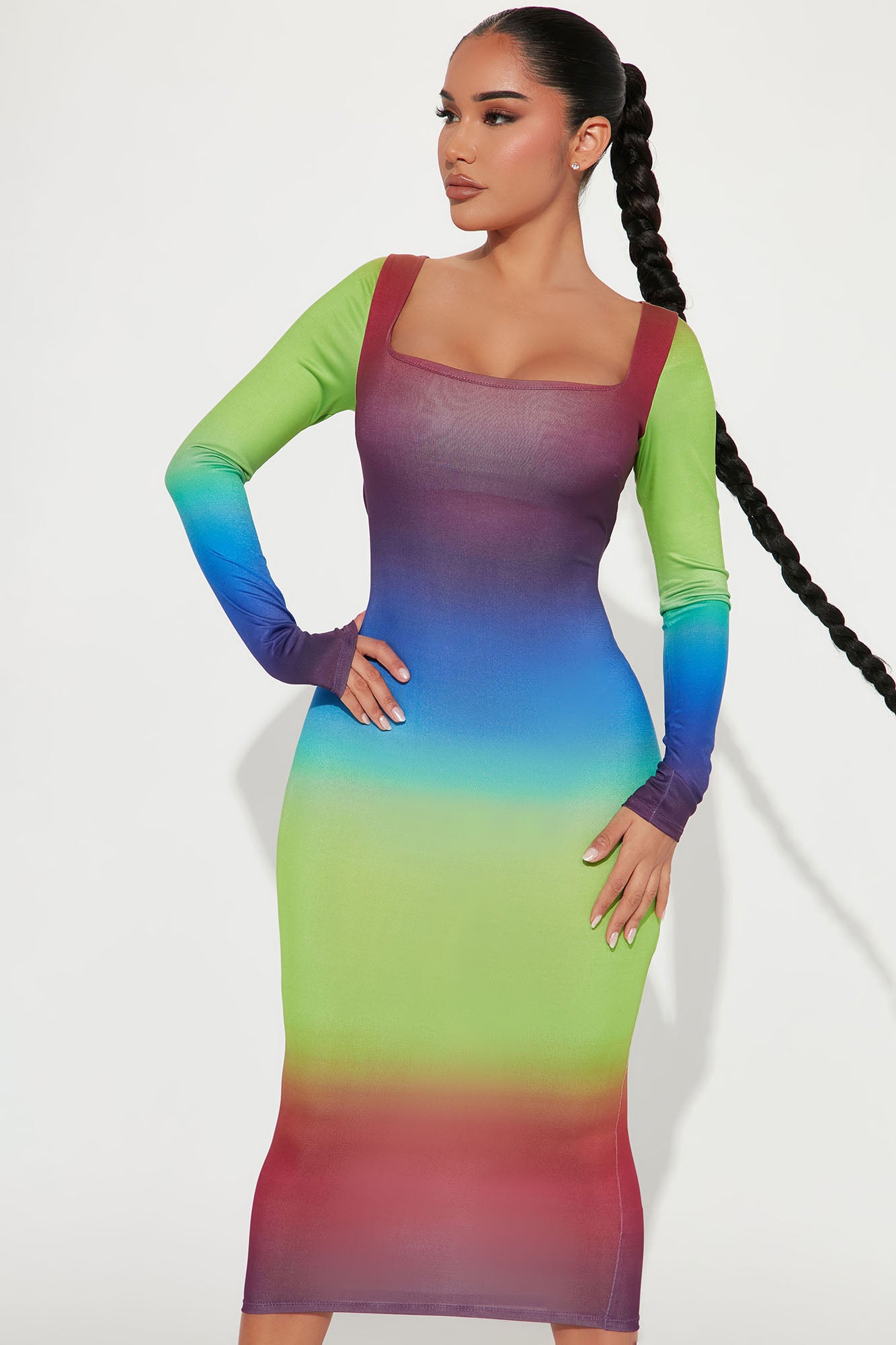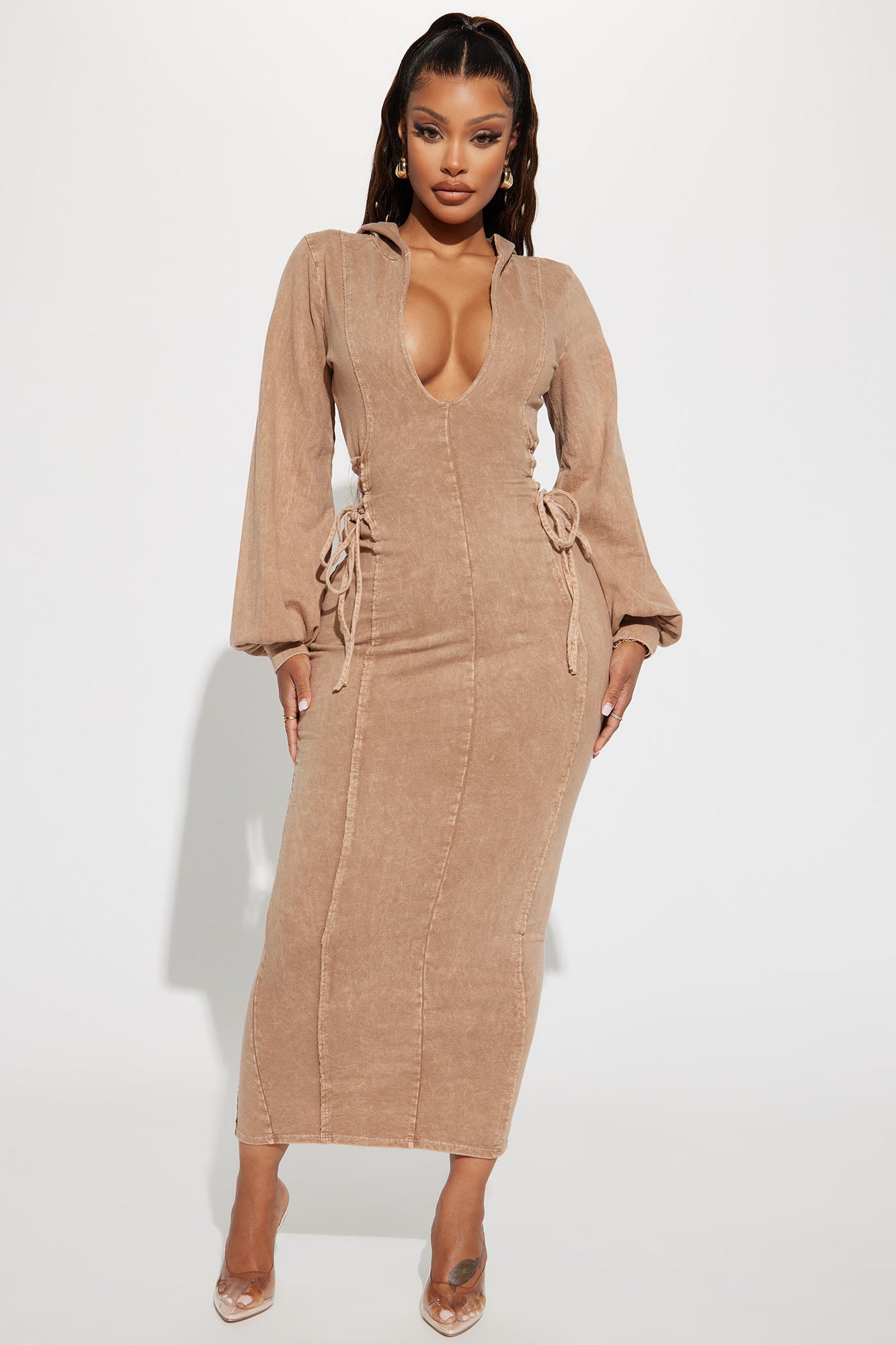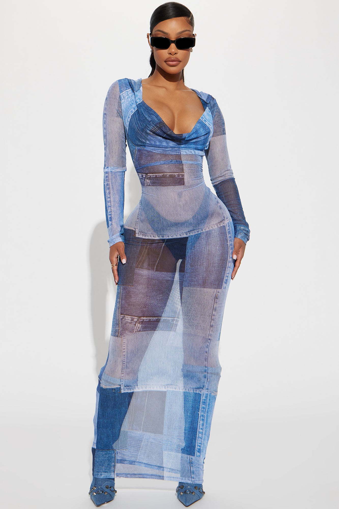 Swirl Into Motion Mesh Midi Dress - Brown/combo