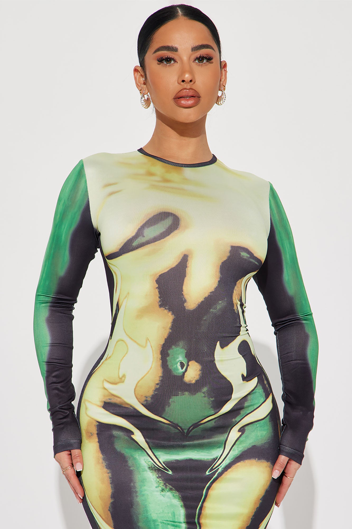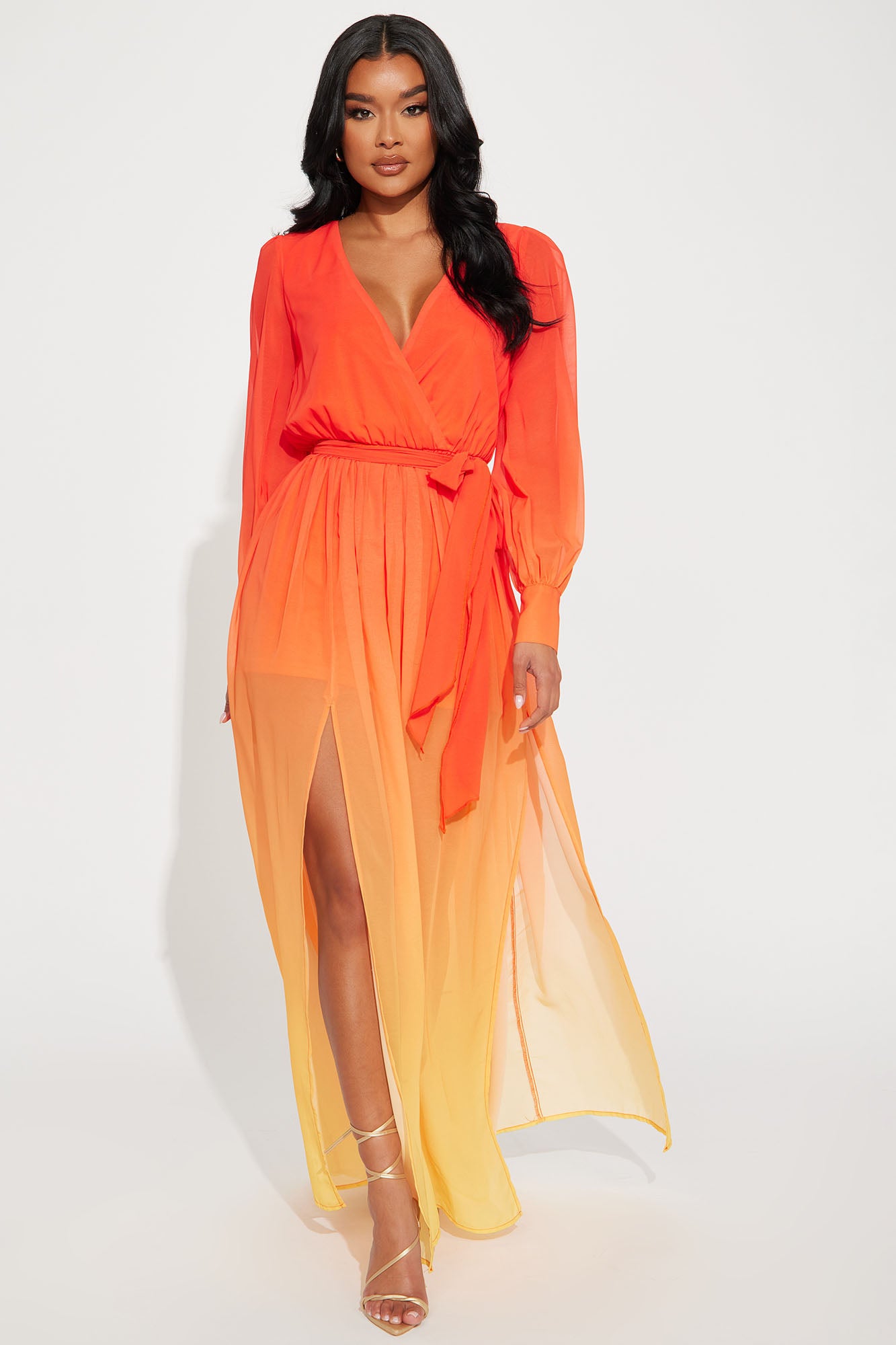Dayna Hooded Mesh Maxi Dress - Rust/combo