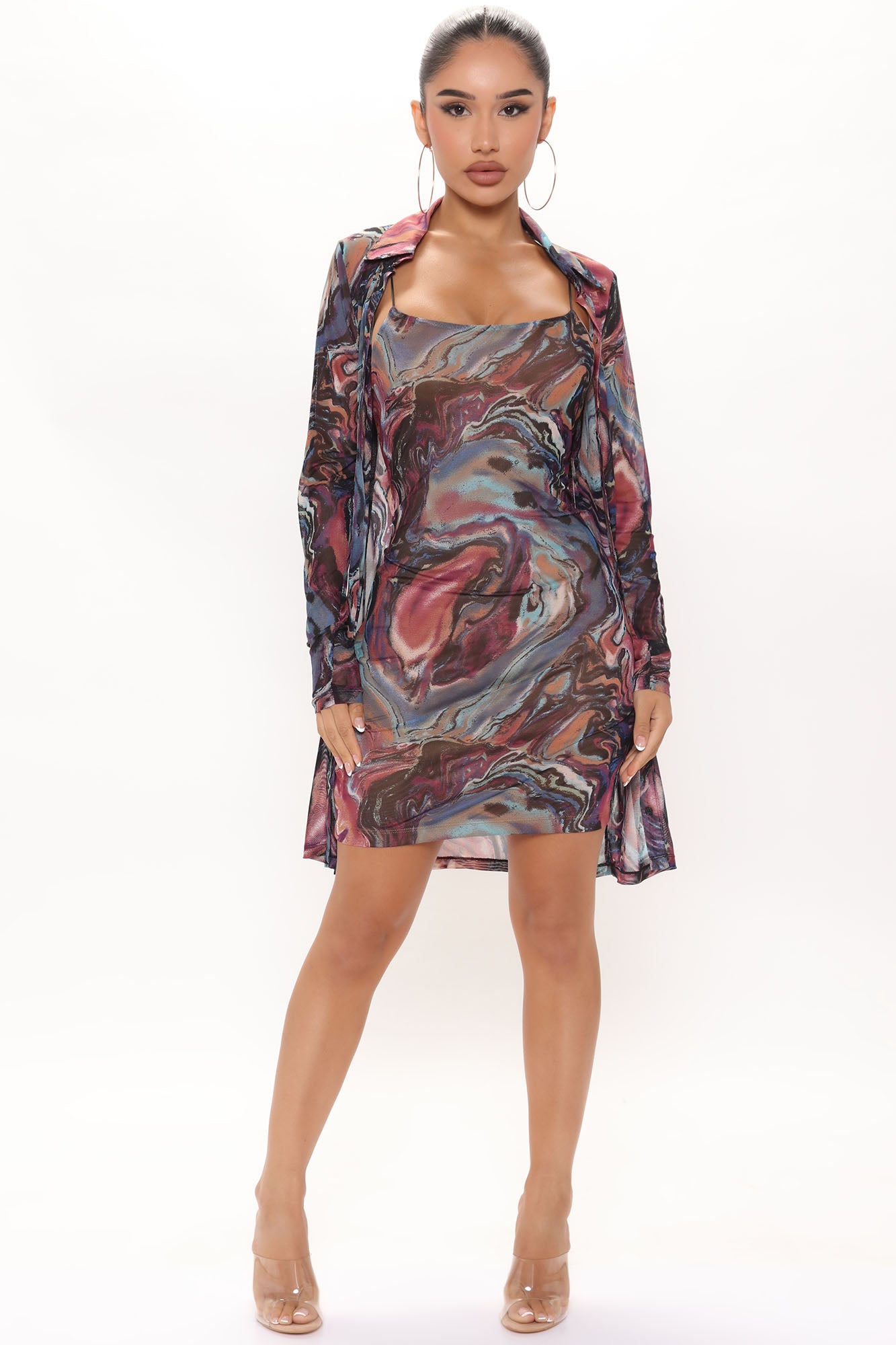Eliane Mesh Mini Dress Set - Burgundy/combo