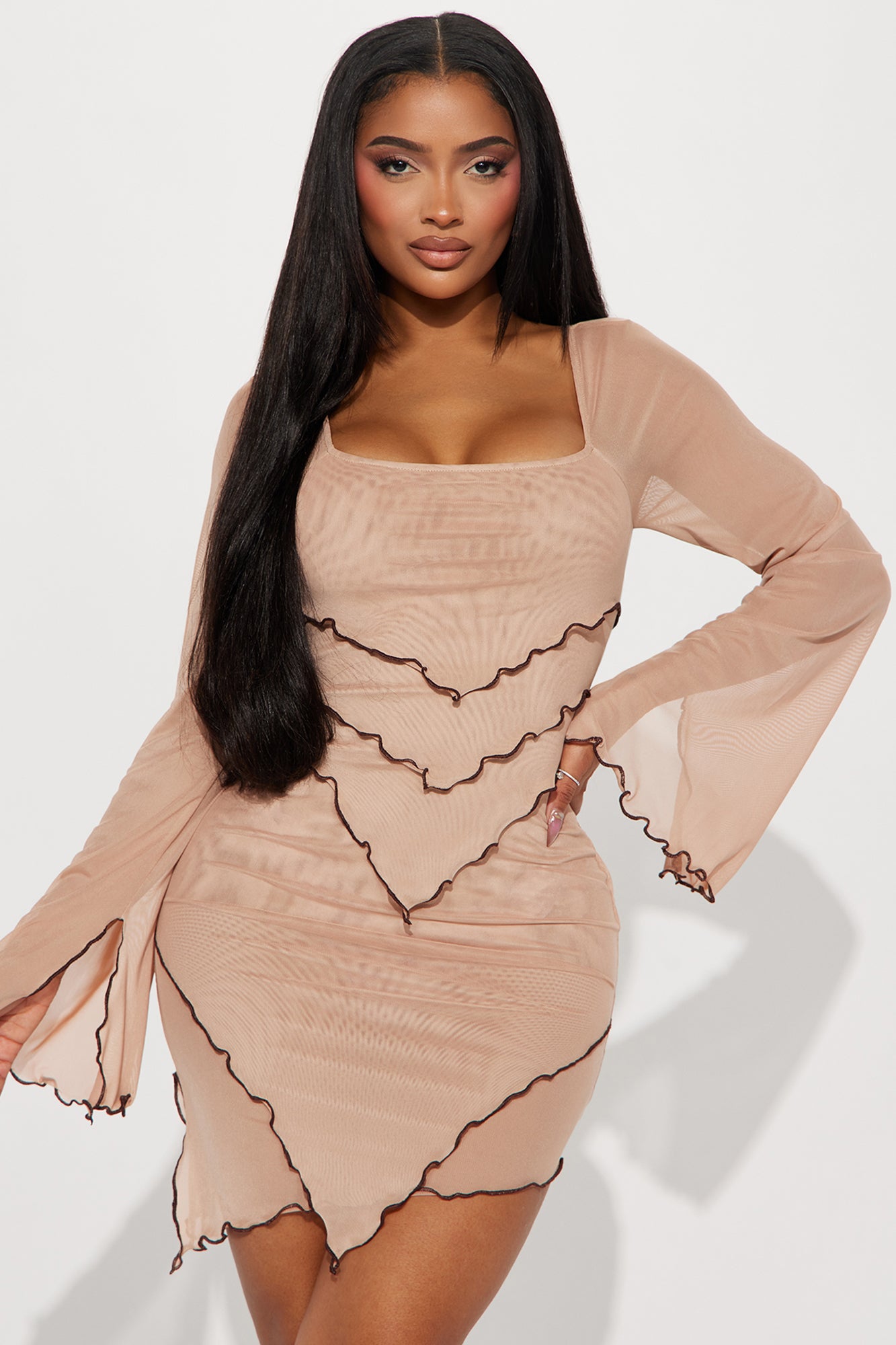 Enchanted Garden Mesh Mini Dress - Mocha/combo