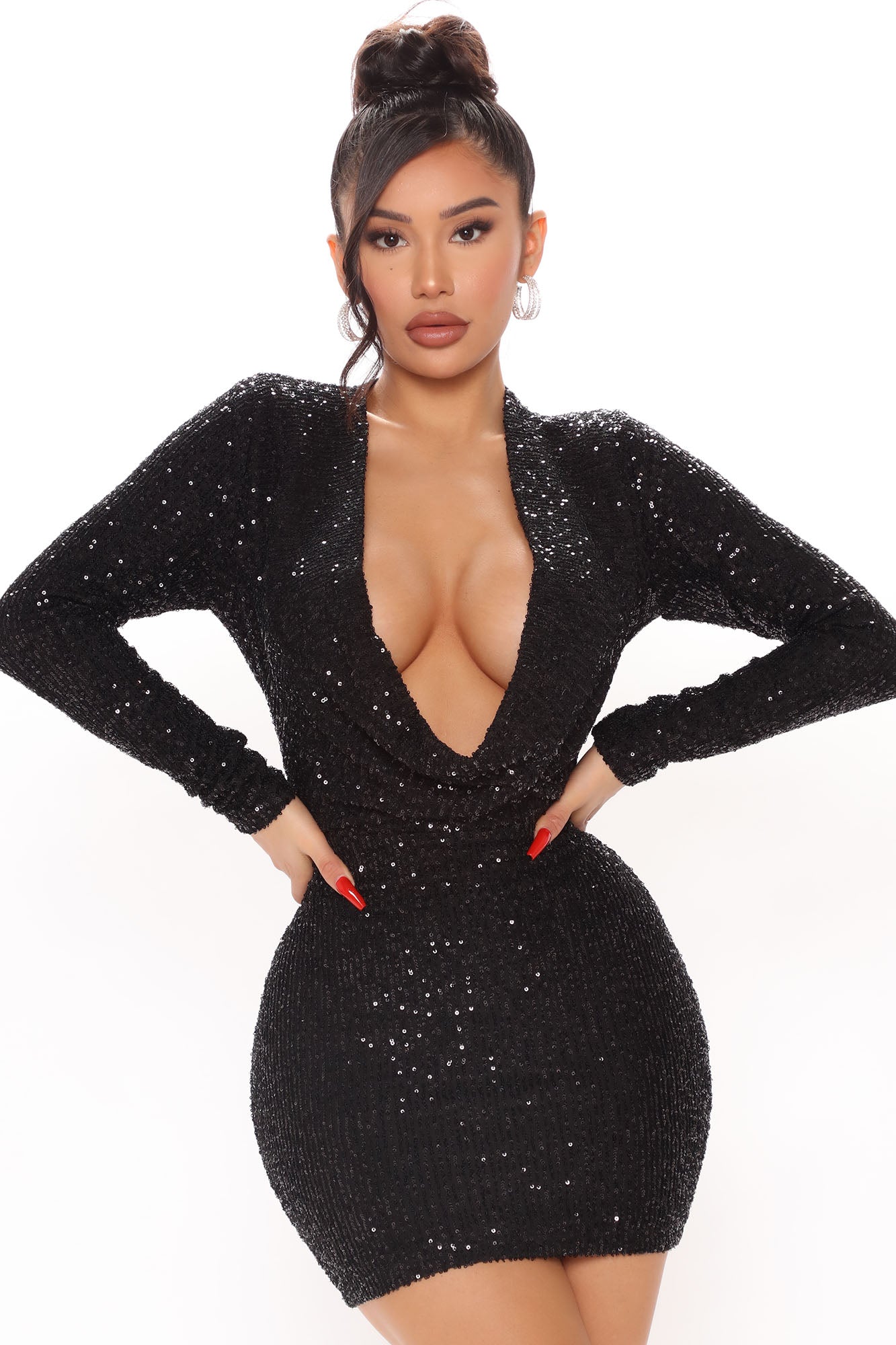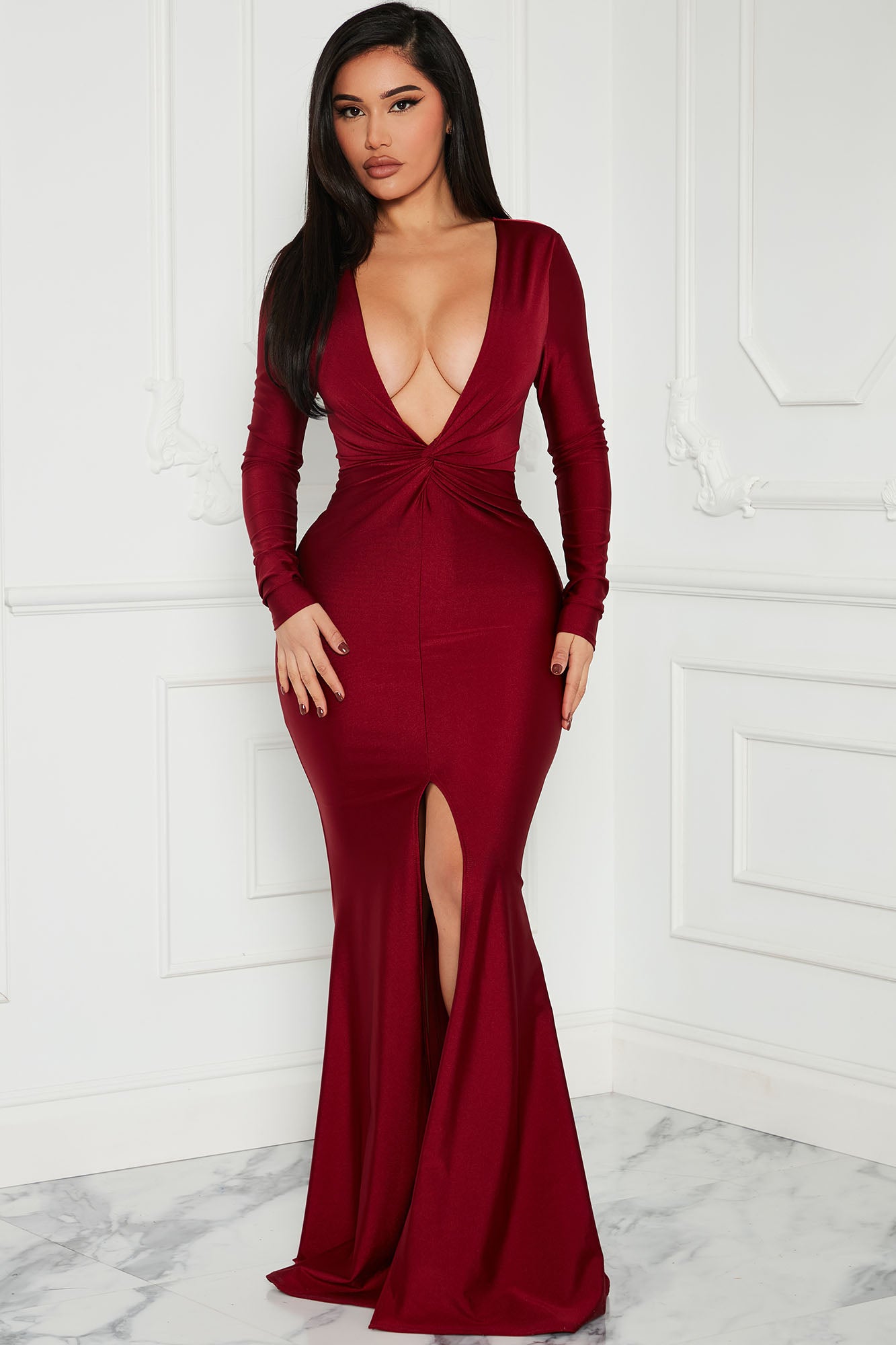 Family Affair Long Sleeve Sequin Dress - Burgundy