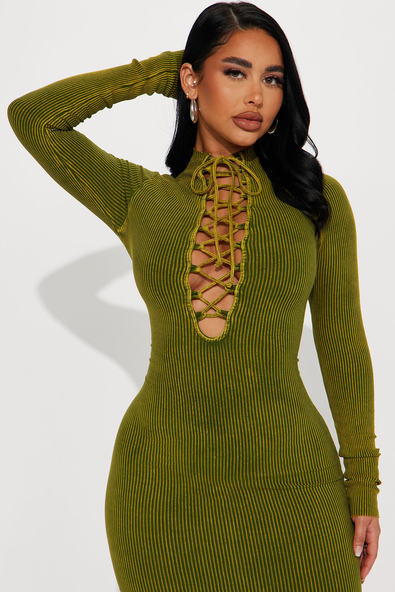 Not Your Average Girl Embellished Mini Dress - Hunter