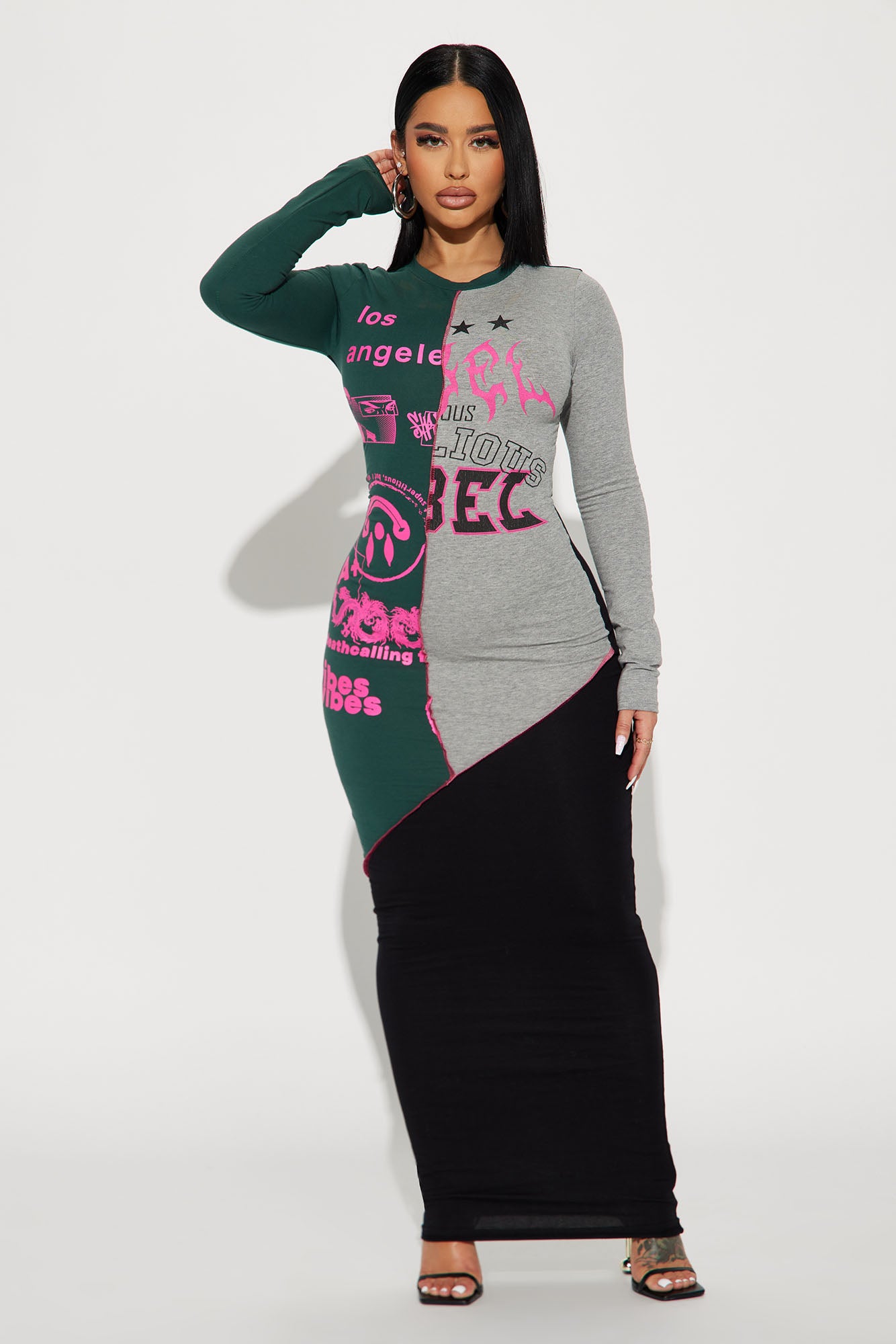 Rebel Without A Cause Maxi Dress - Grey/combo