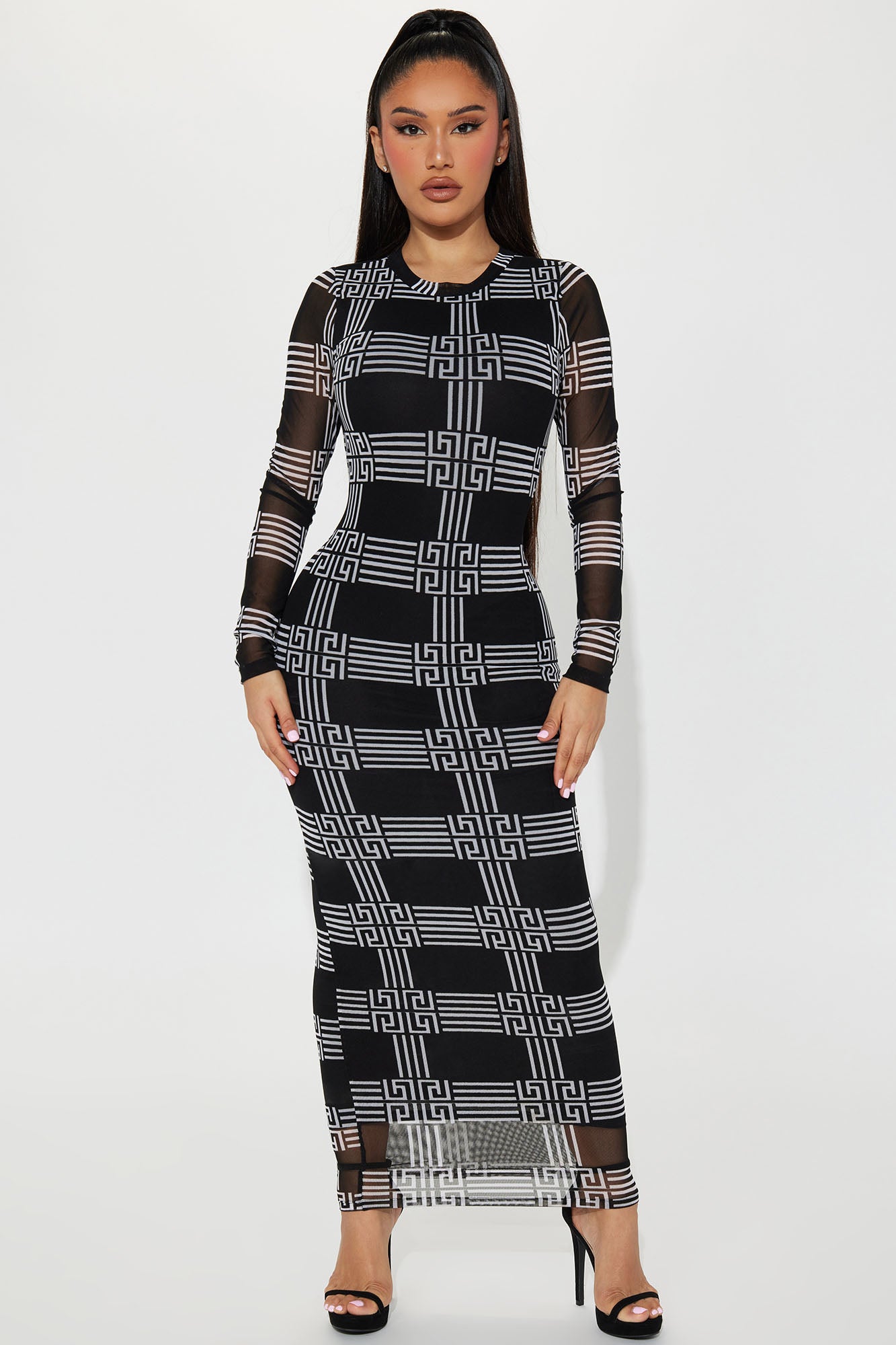 Midnight Lovers Mesh Maxi Dress - Black/Grey