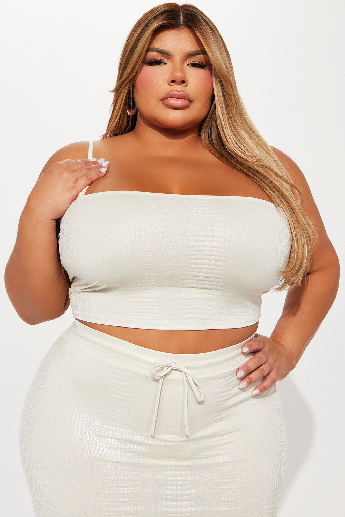 A New Me Faux Leather Skirt Set - Cream