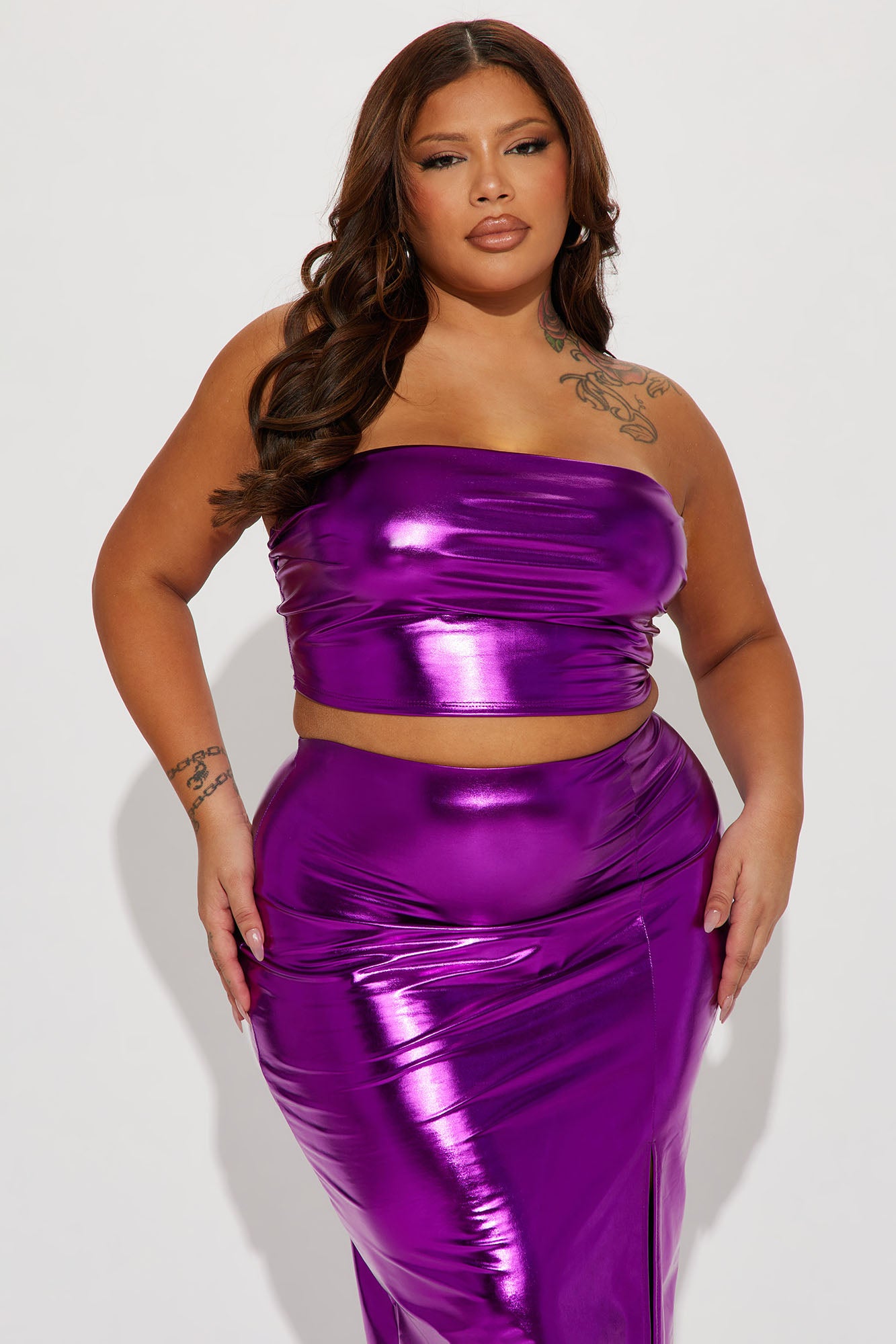Always Distracted Metallic Skirt Set - Purple