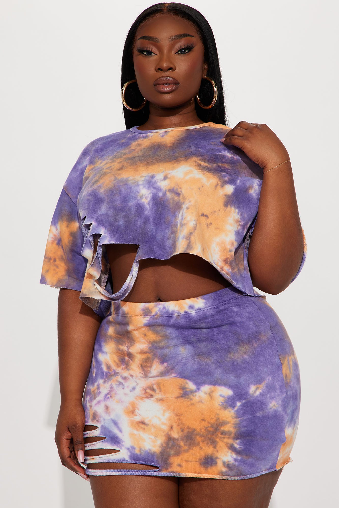 Chill Day Tie Dye Skirt Set - Orange/combo