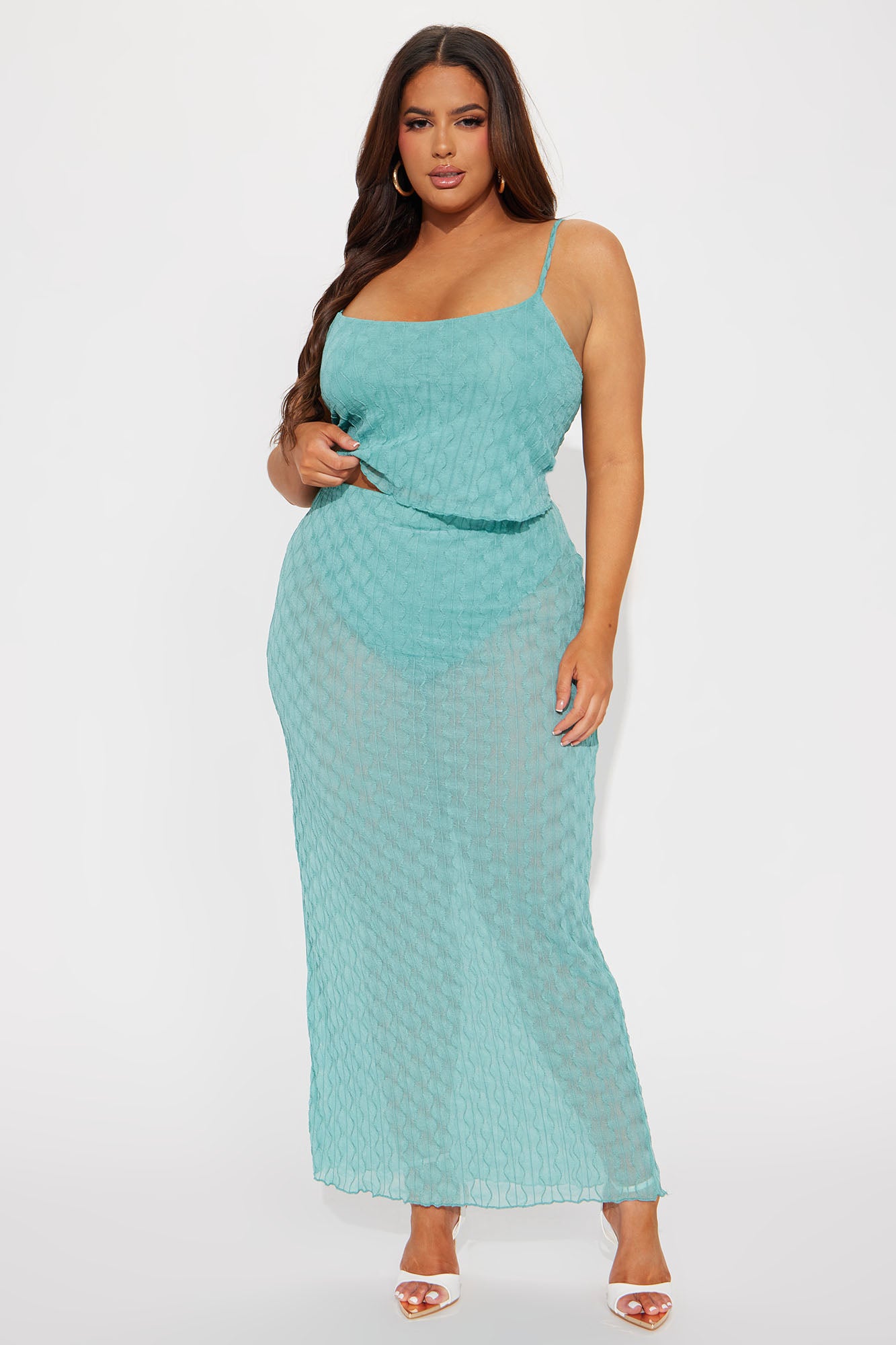 Cynthia Mesh Skirt Set - Teal