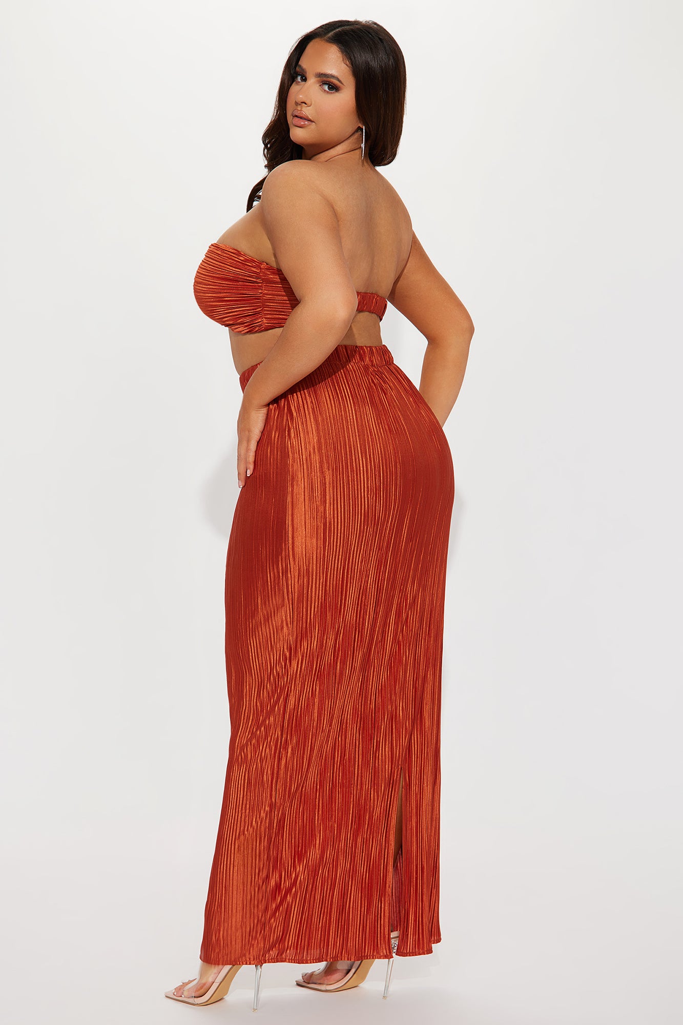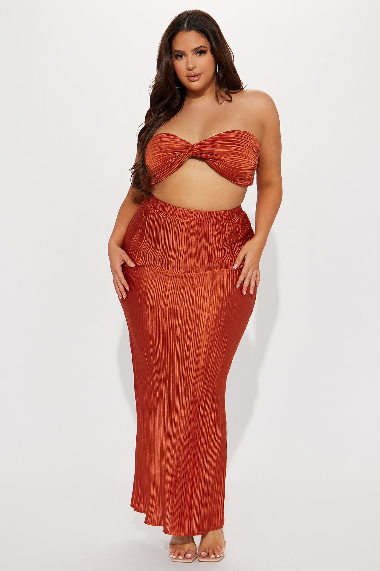 Embrace It Plisse Maxi Skirt Set - Copper