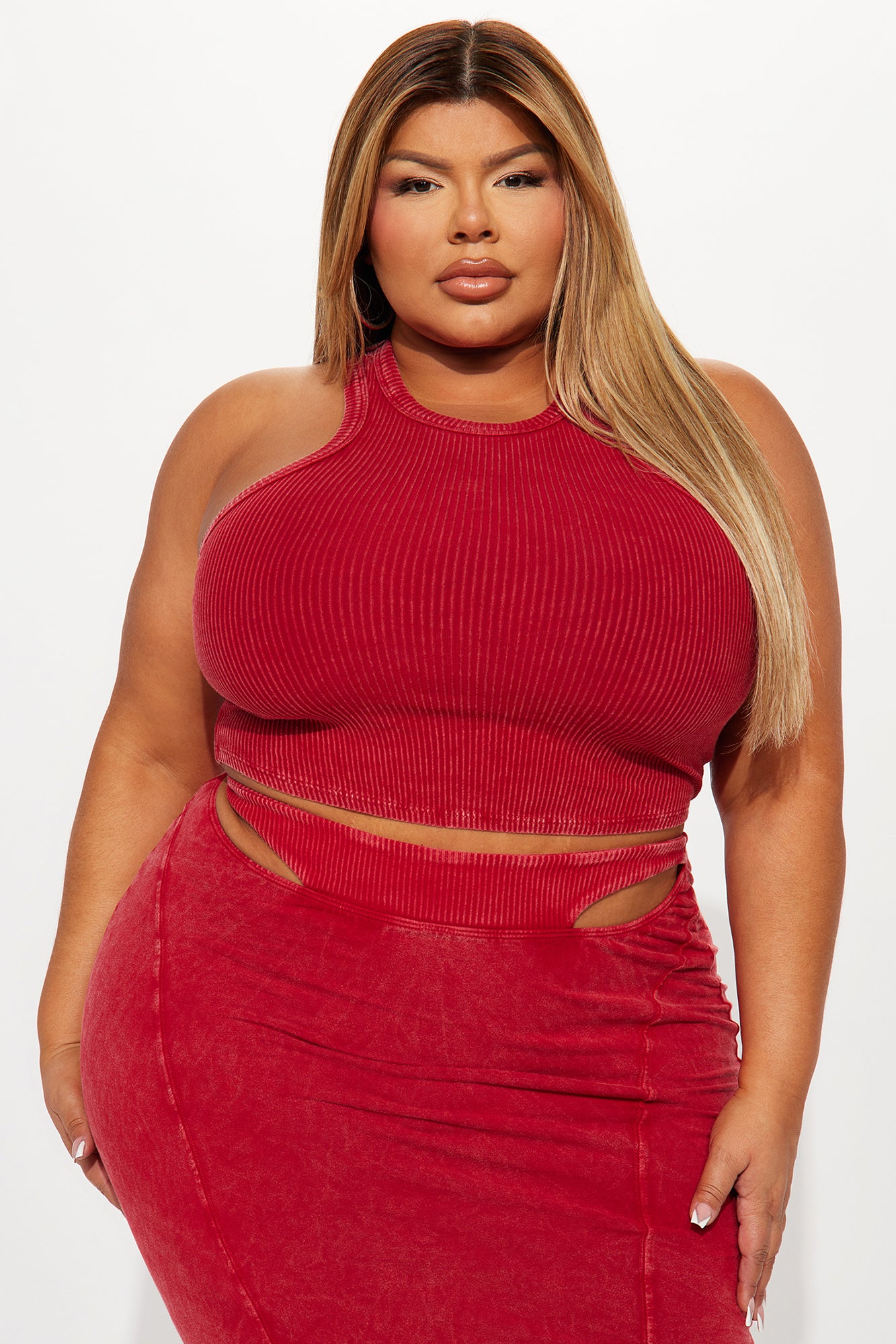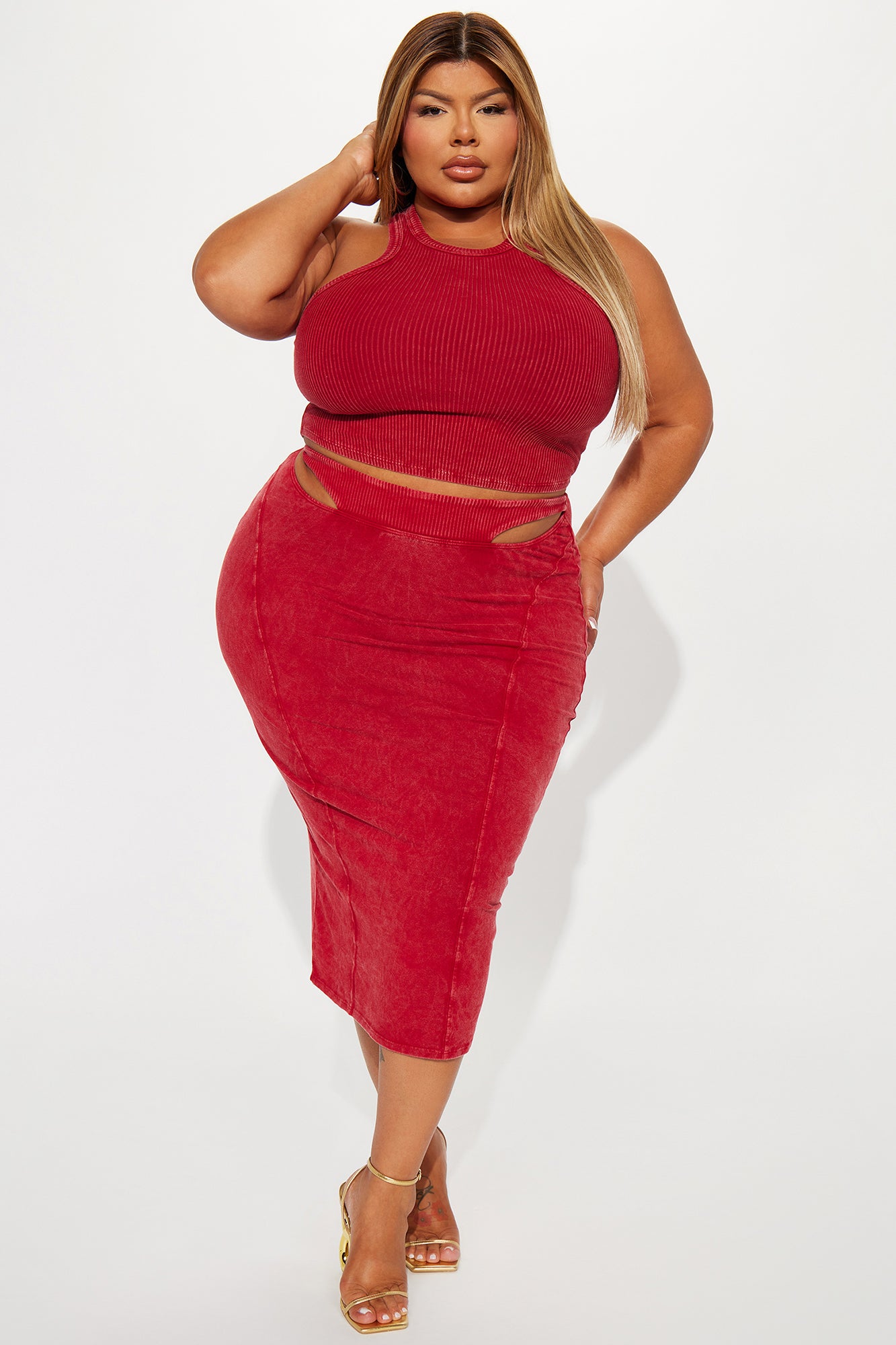 Midnight Boundaries Ribbed Skirt Set - Red