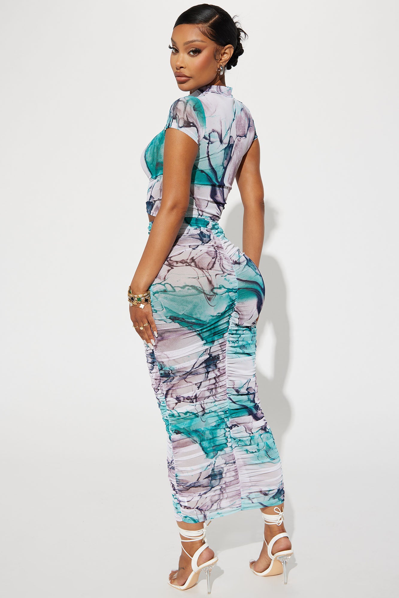 • Ruched Mesh Skirt Set