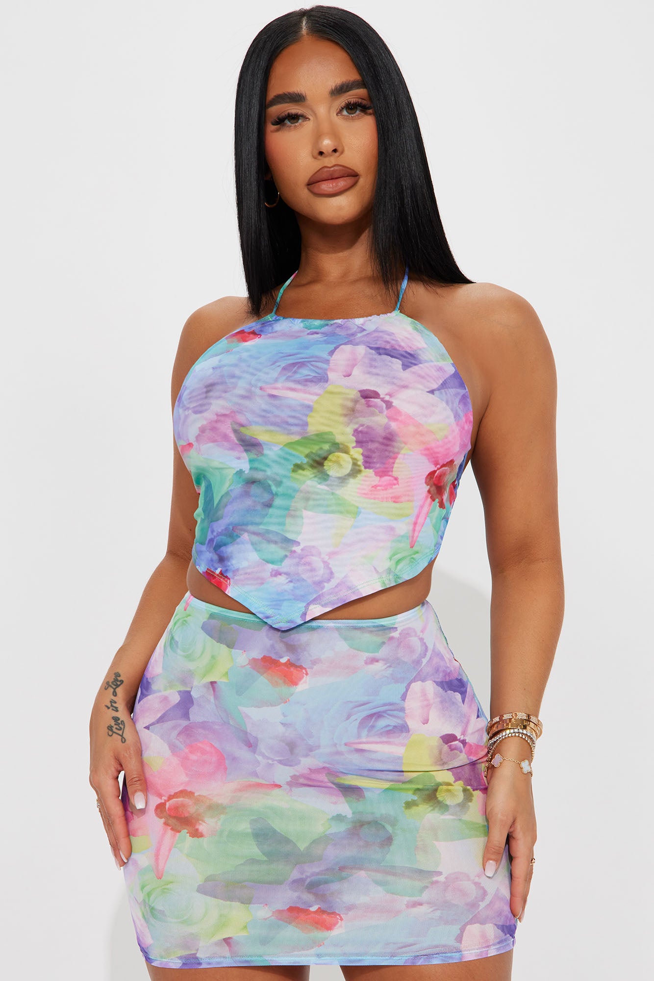 Never Gonna Stop Mesh Skirt Set - Multi Color