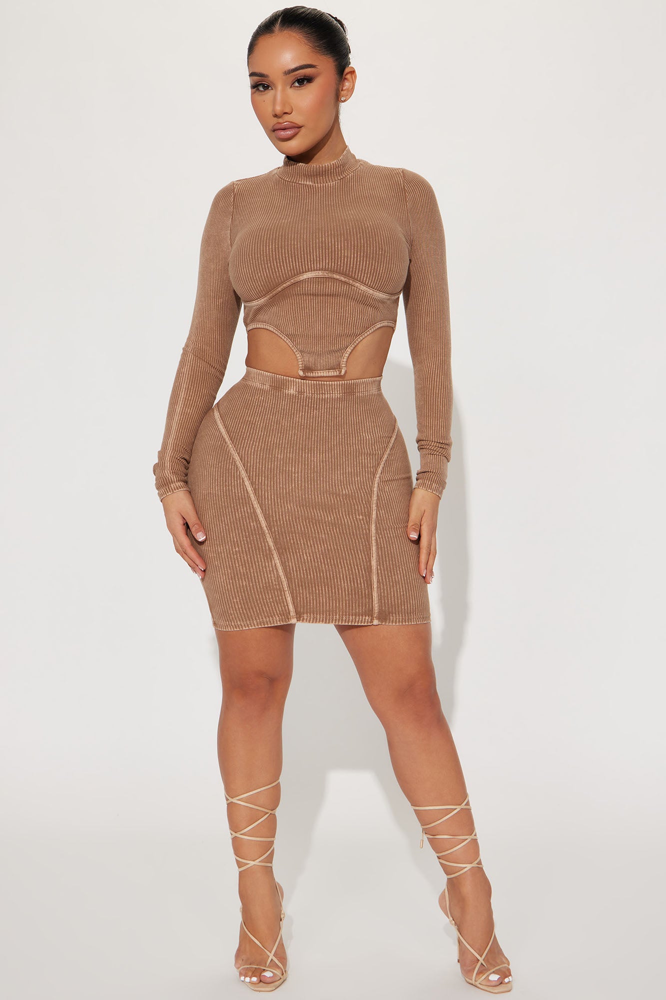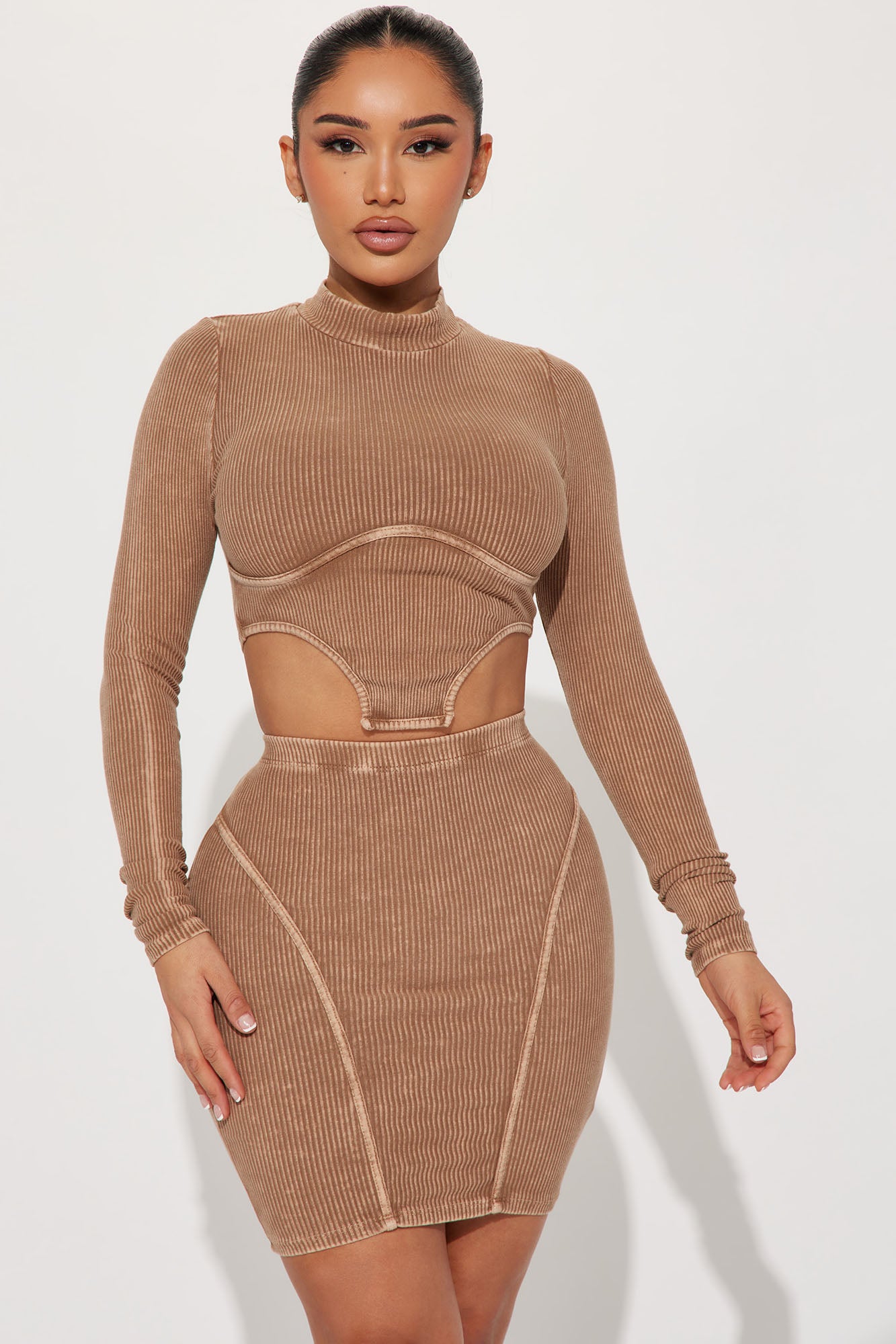 Brielle Polka Dot Mini Skirt Set - Brown/combo