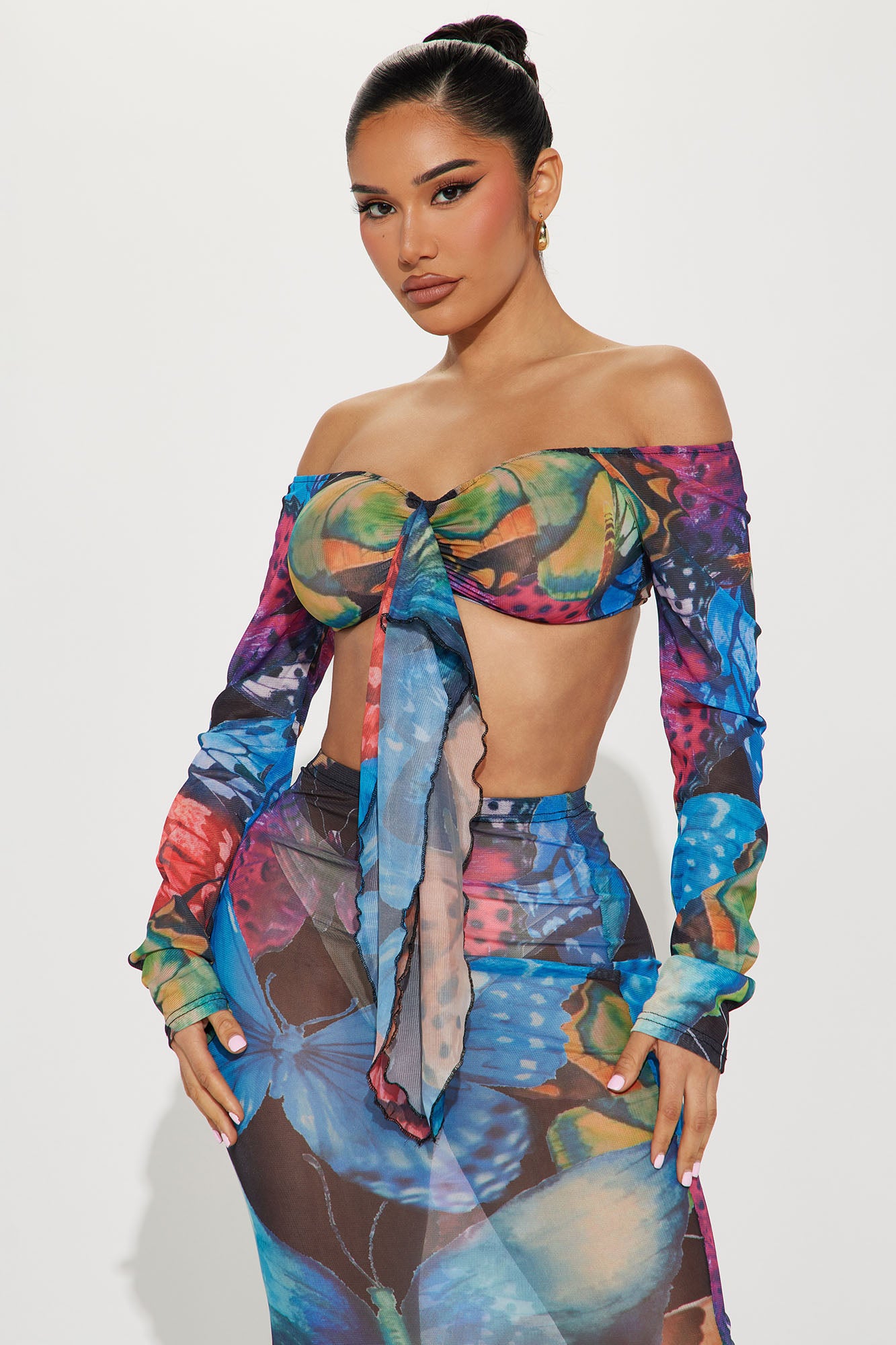 Butterfly Life Mesh Skirt Set - Blue/combo