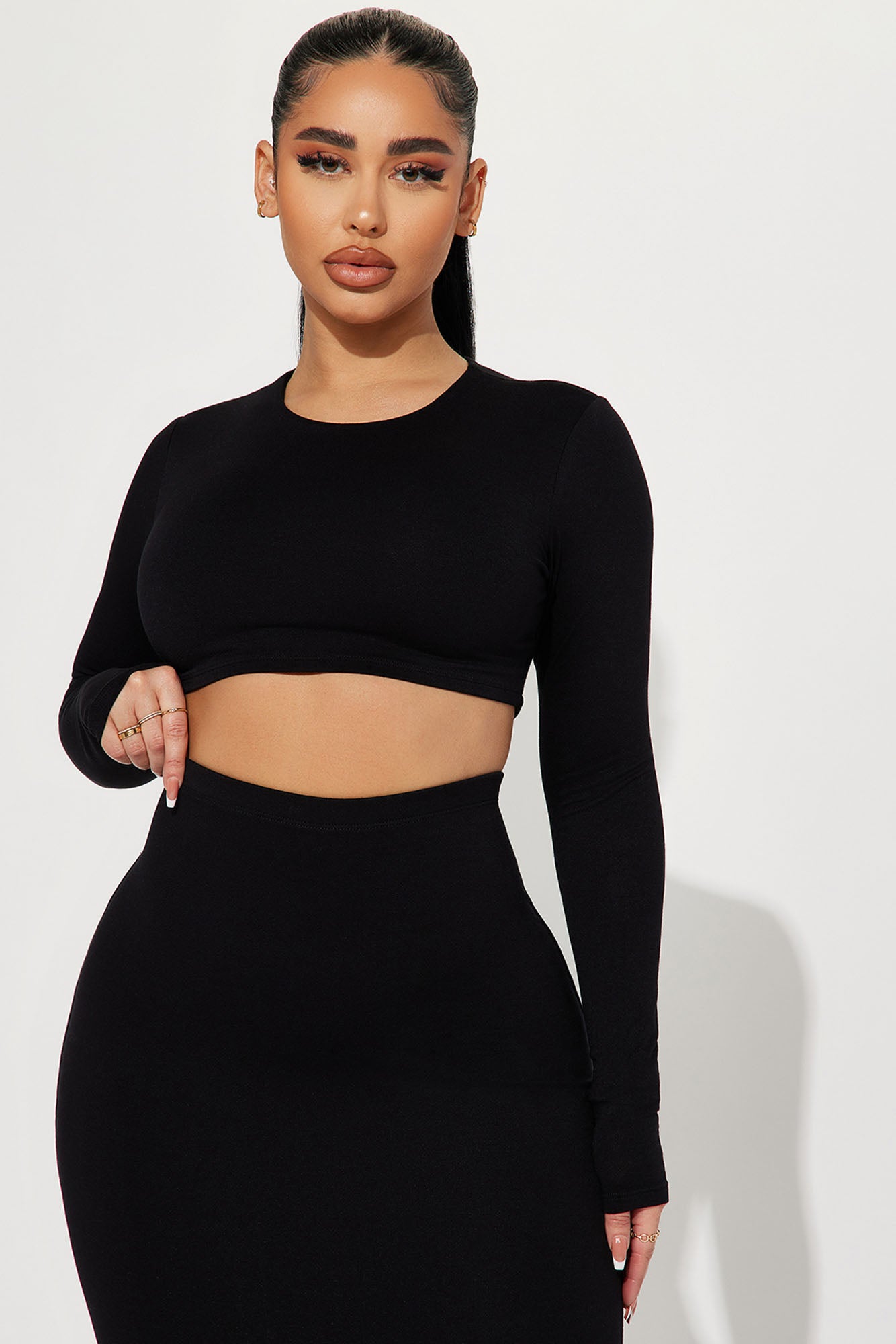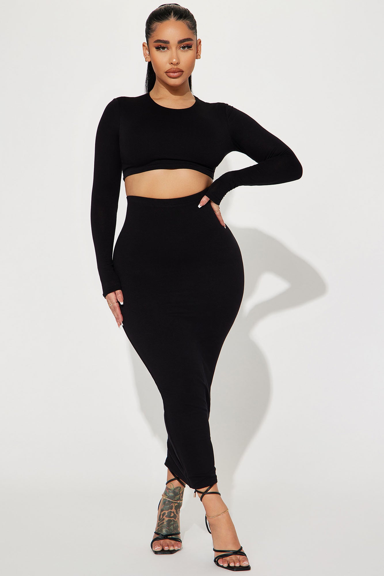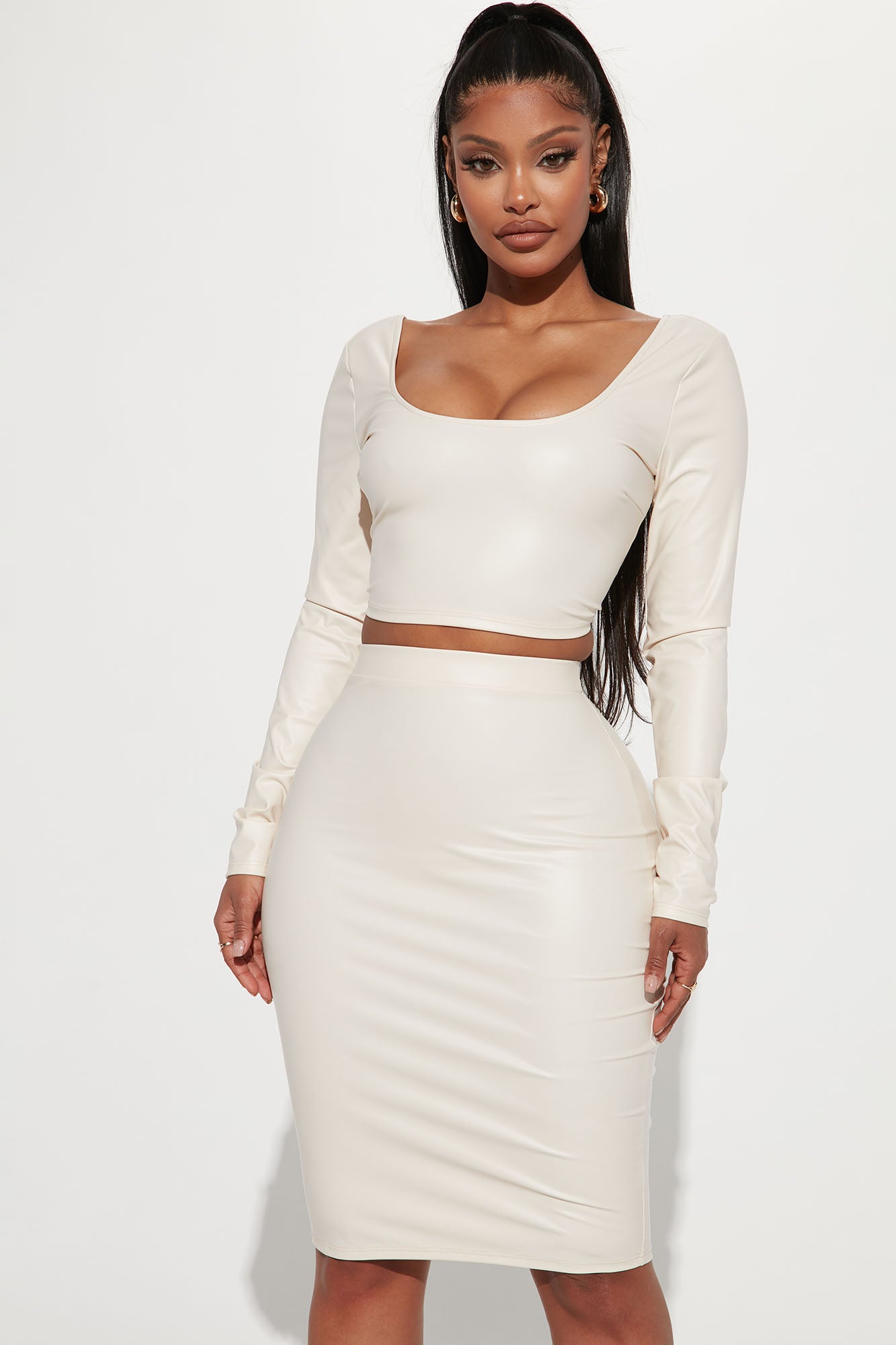 Insta Famous Long Sleeve Midi Skirt Set - Cream