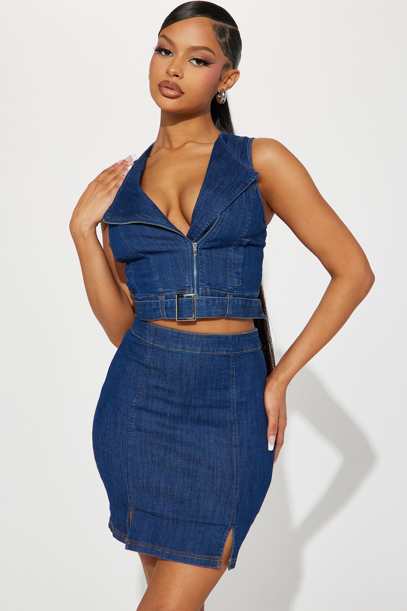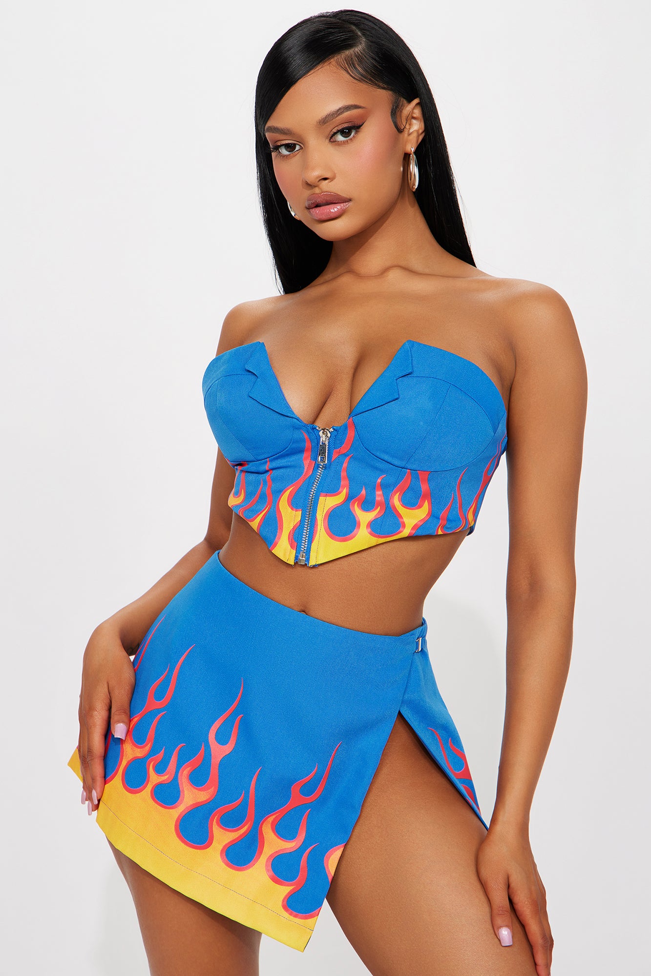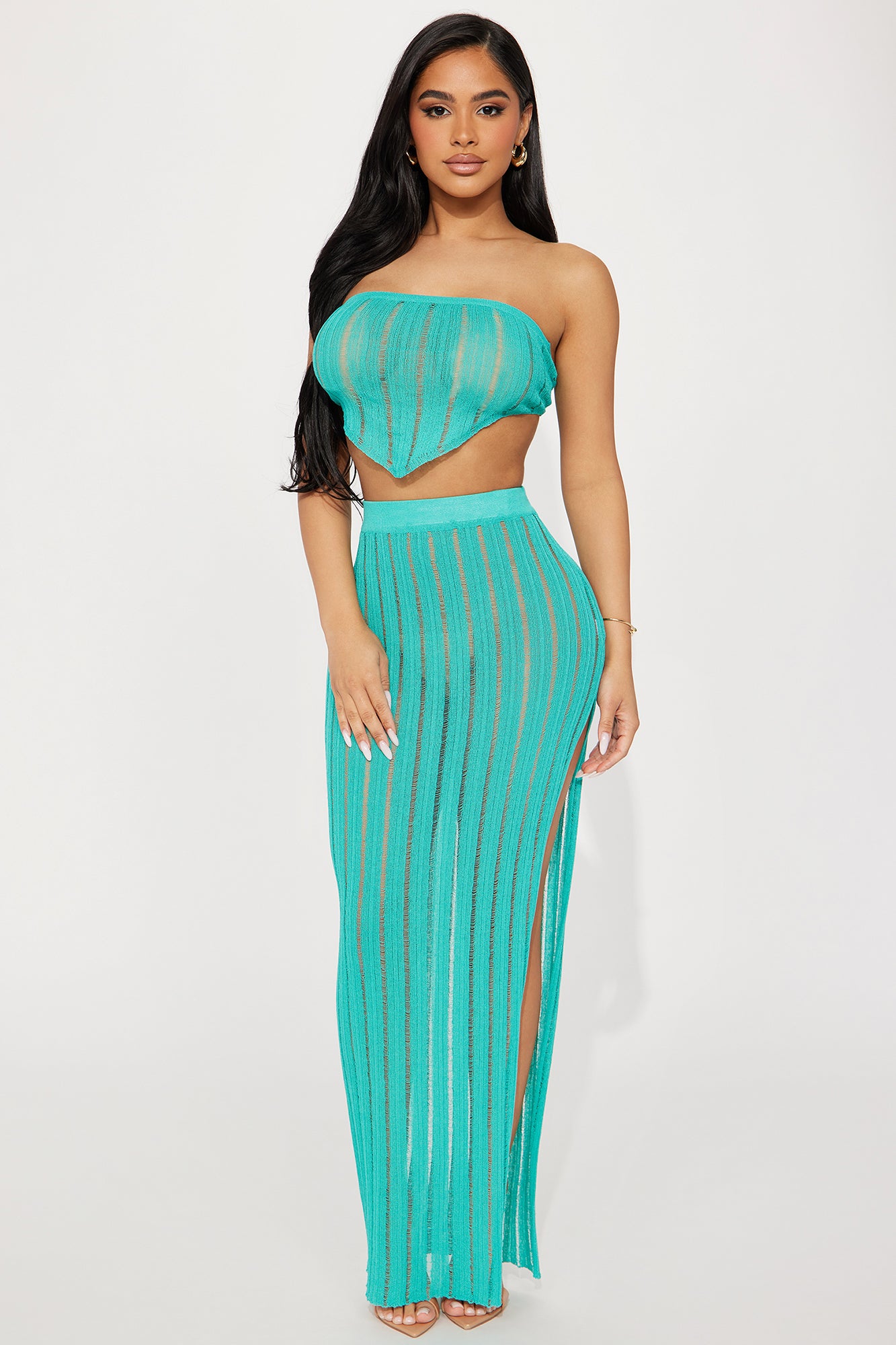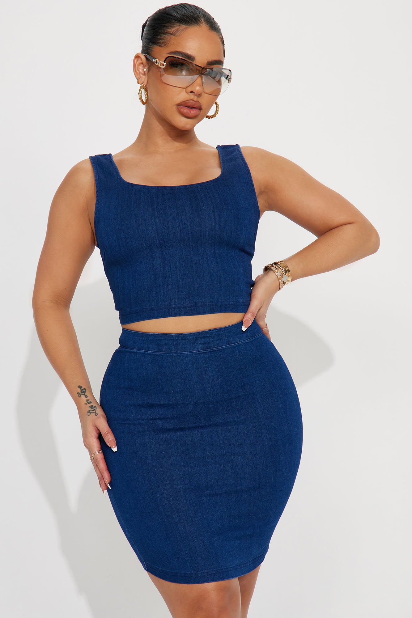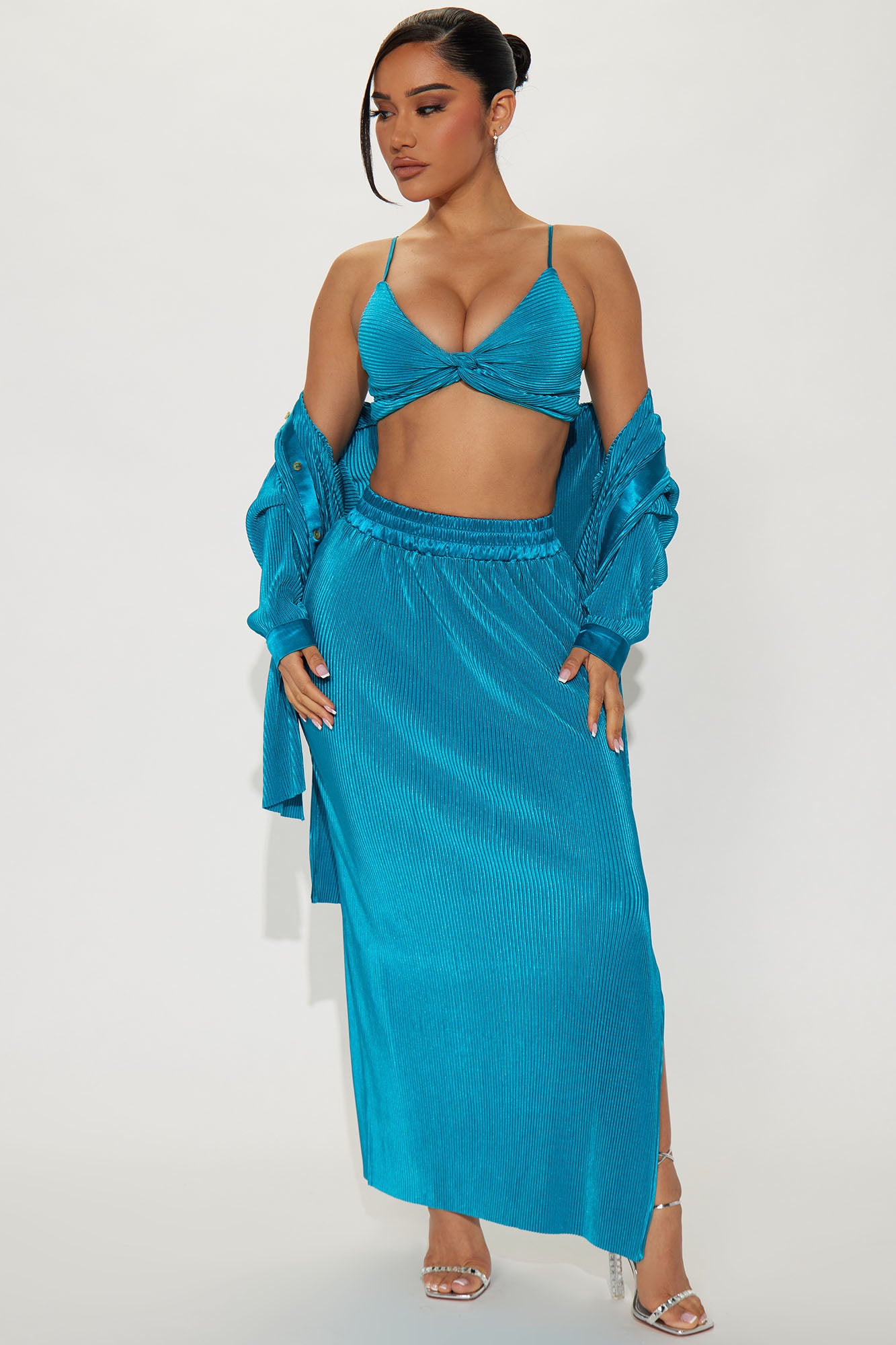 Stay Fly Slinky Skirt Set - Dusty Blue