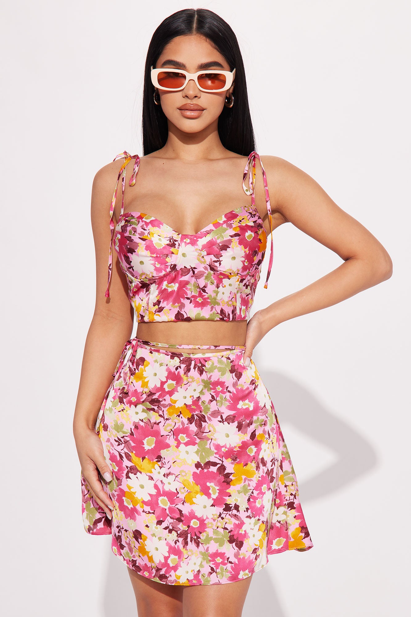 Super Lucky Short Sleeve Skirt Set - Pink/combo