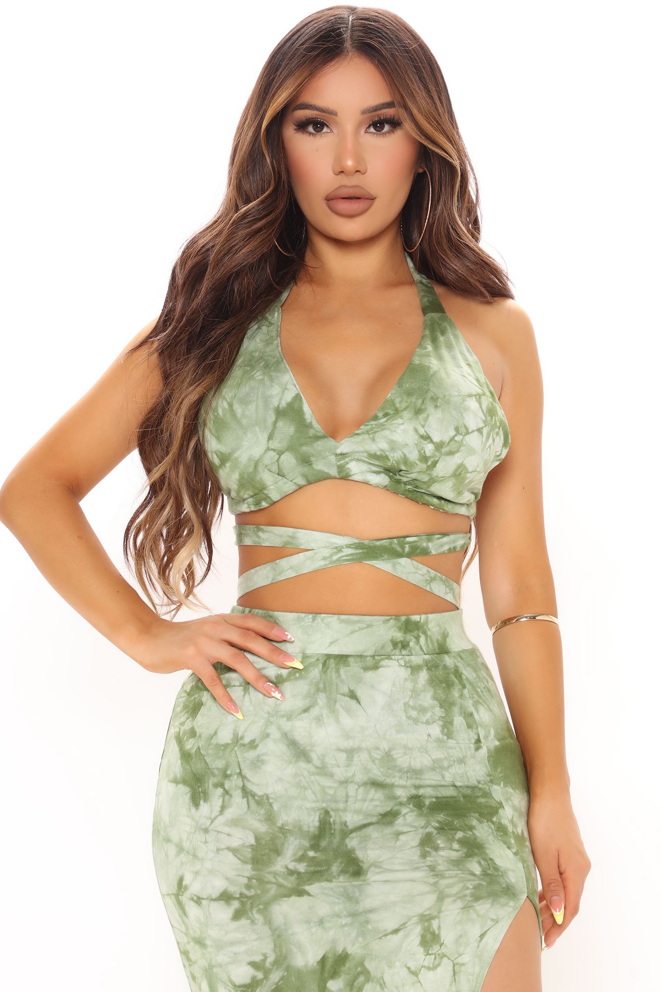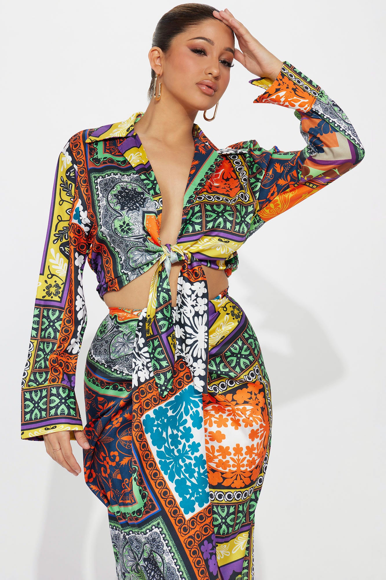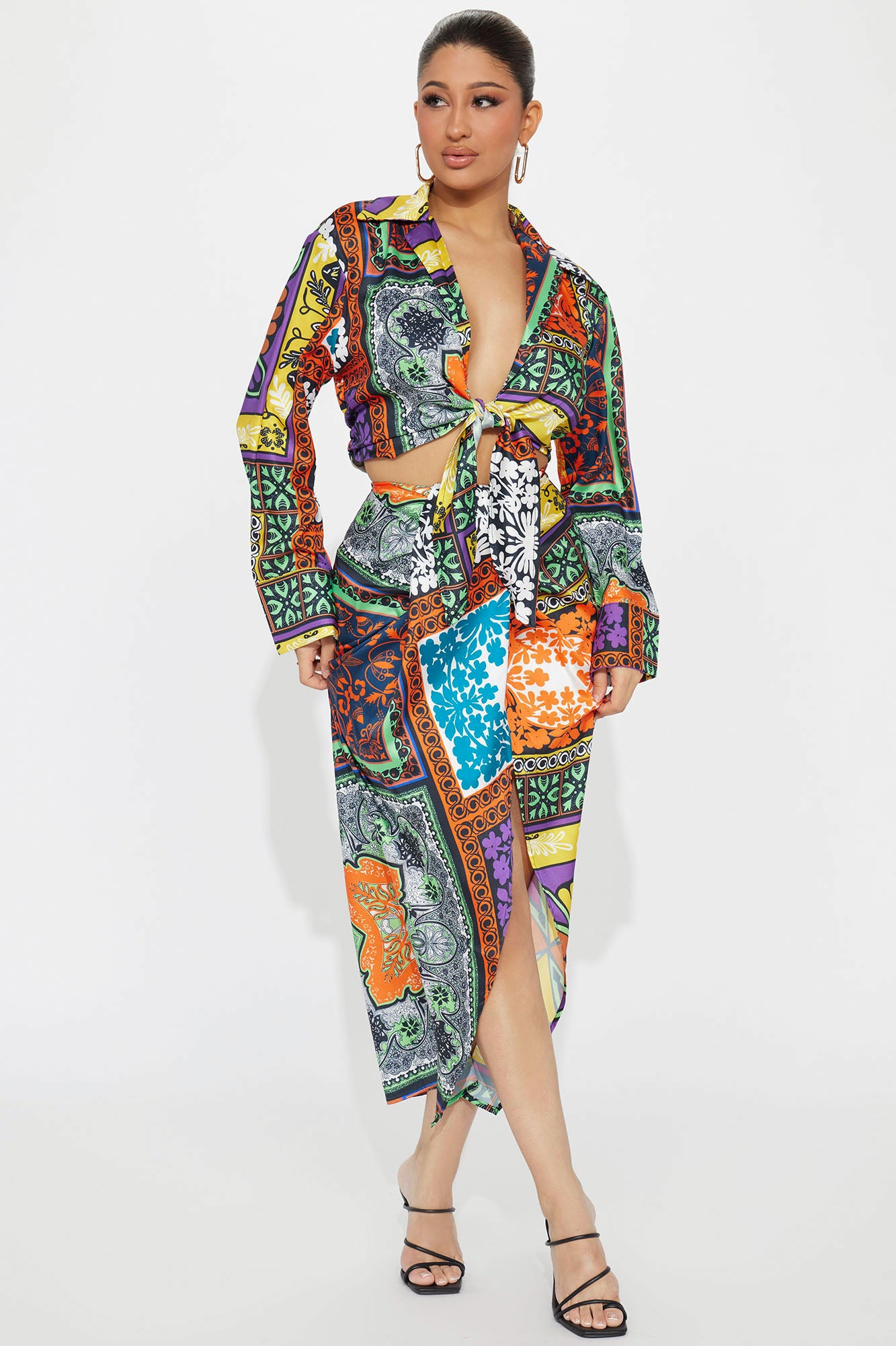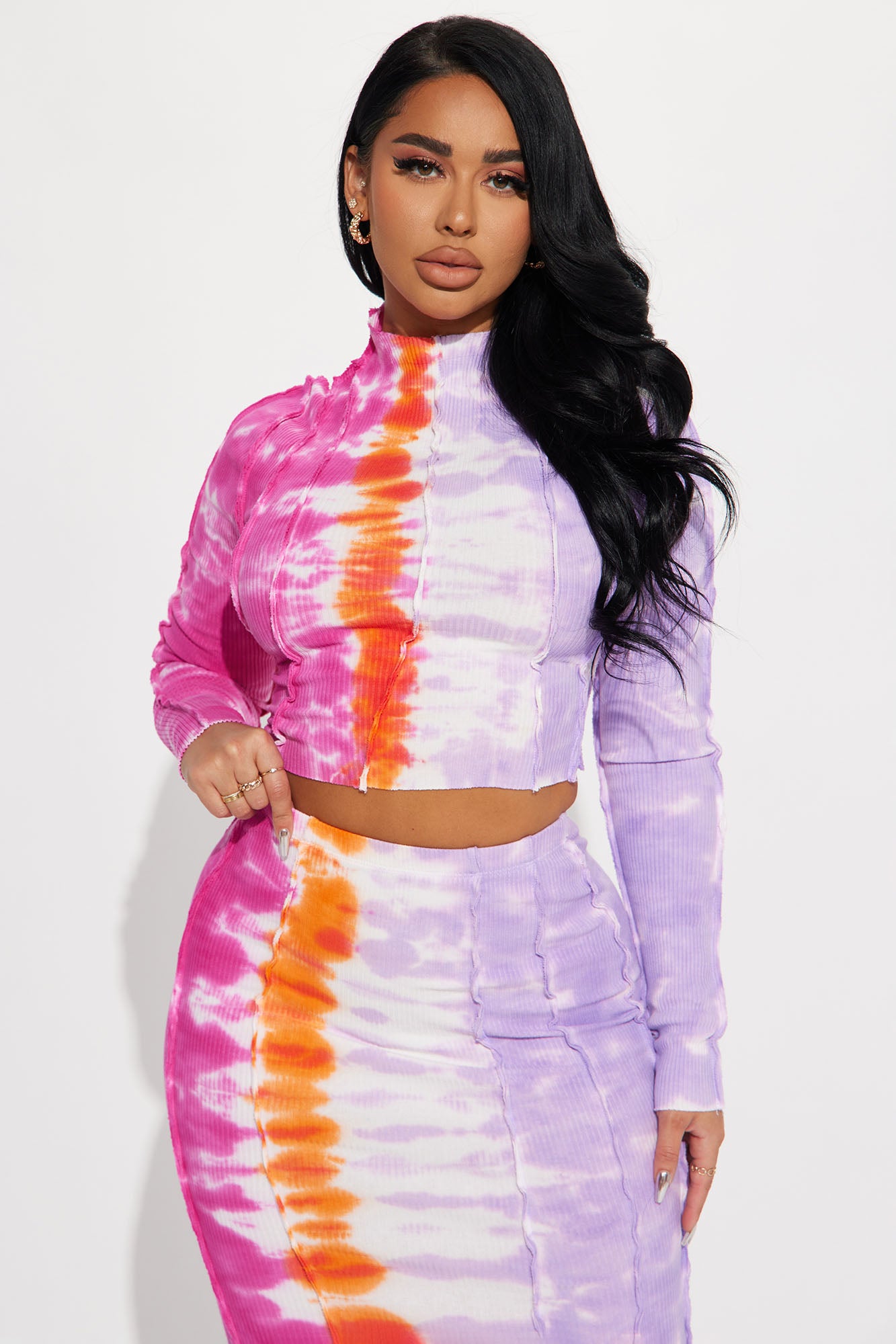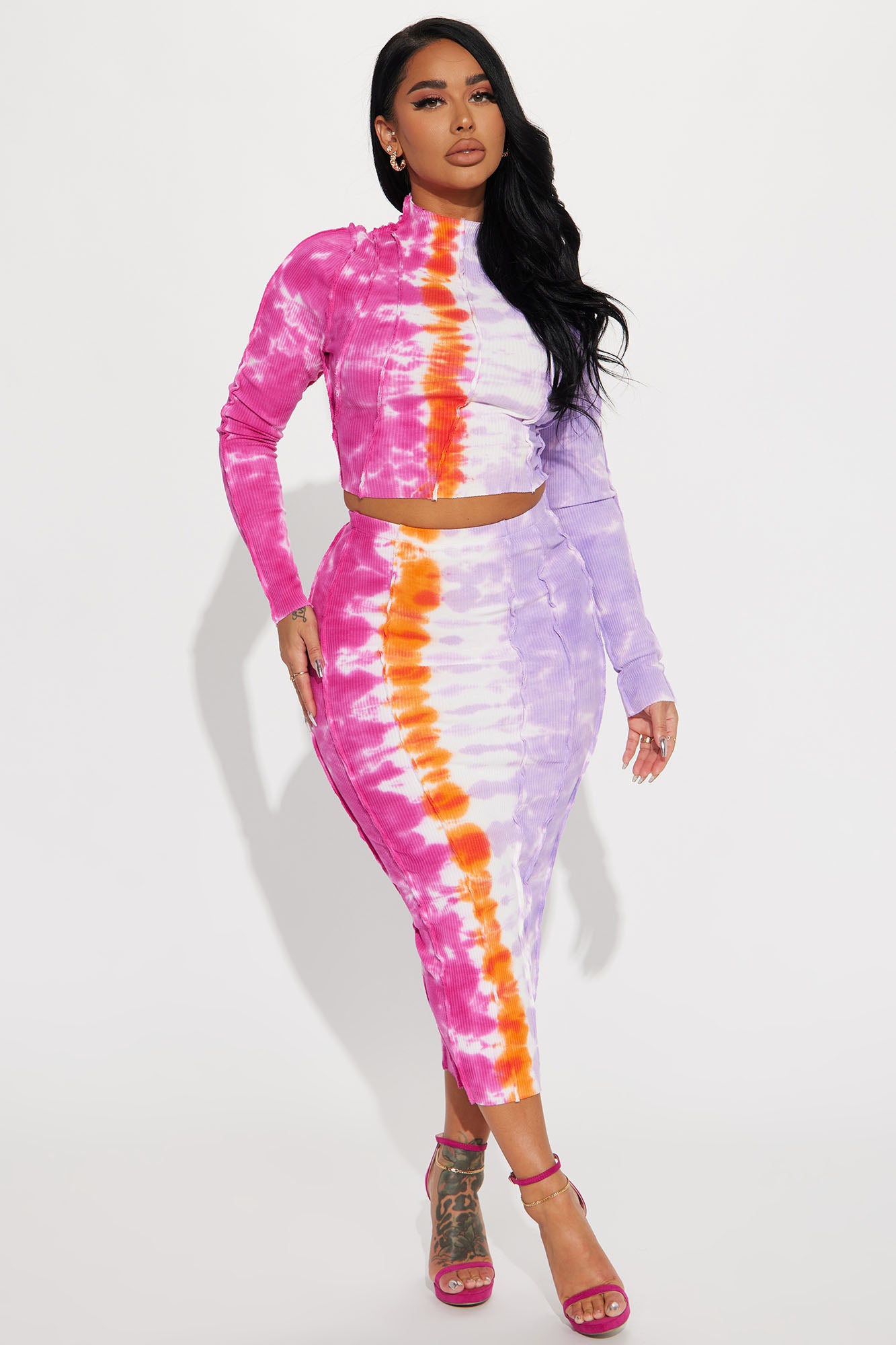 Talk To Me Tie Dye Midi Skirt Set - Hot Pink/combo