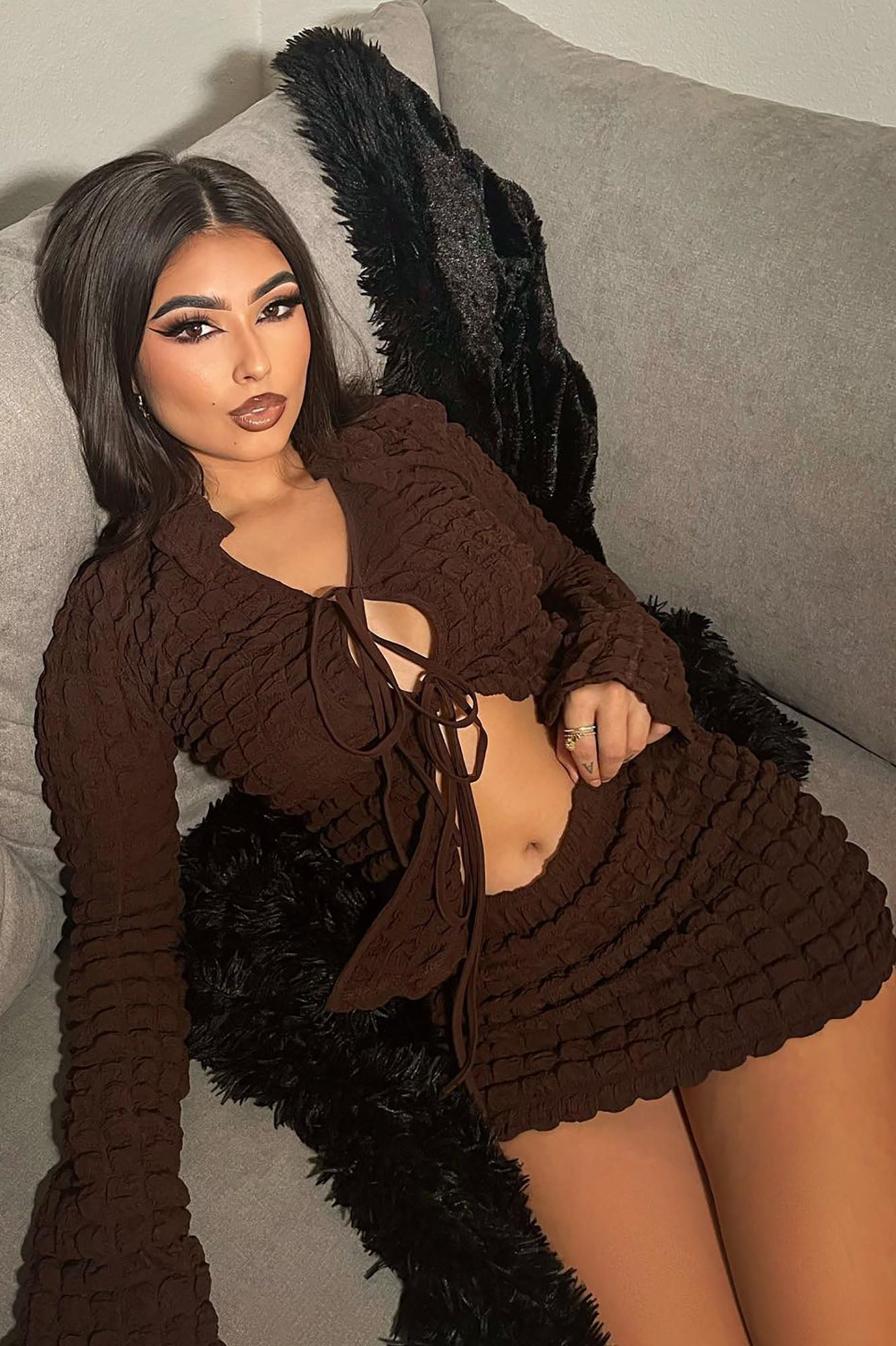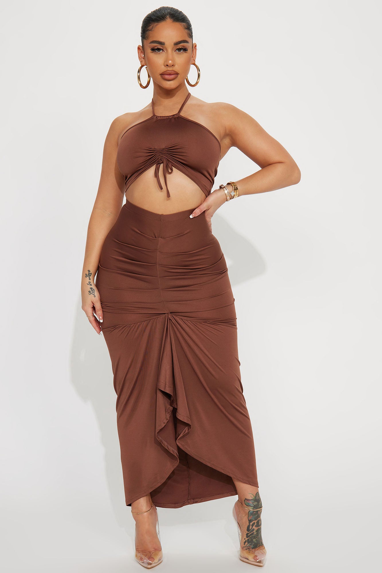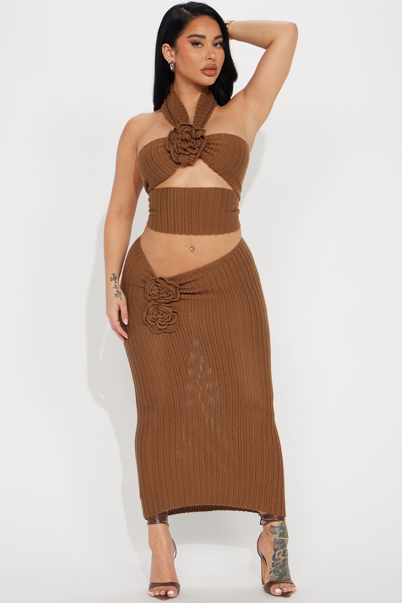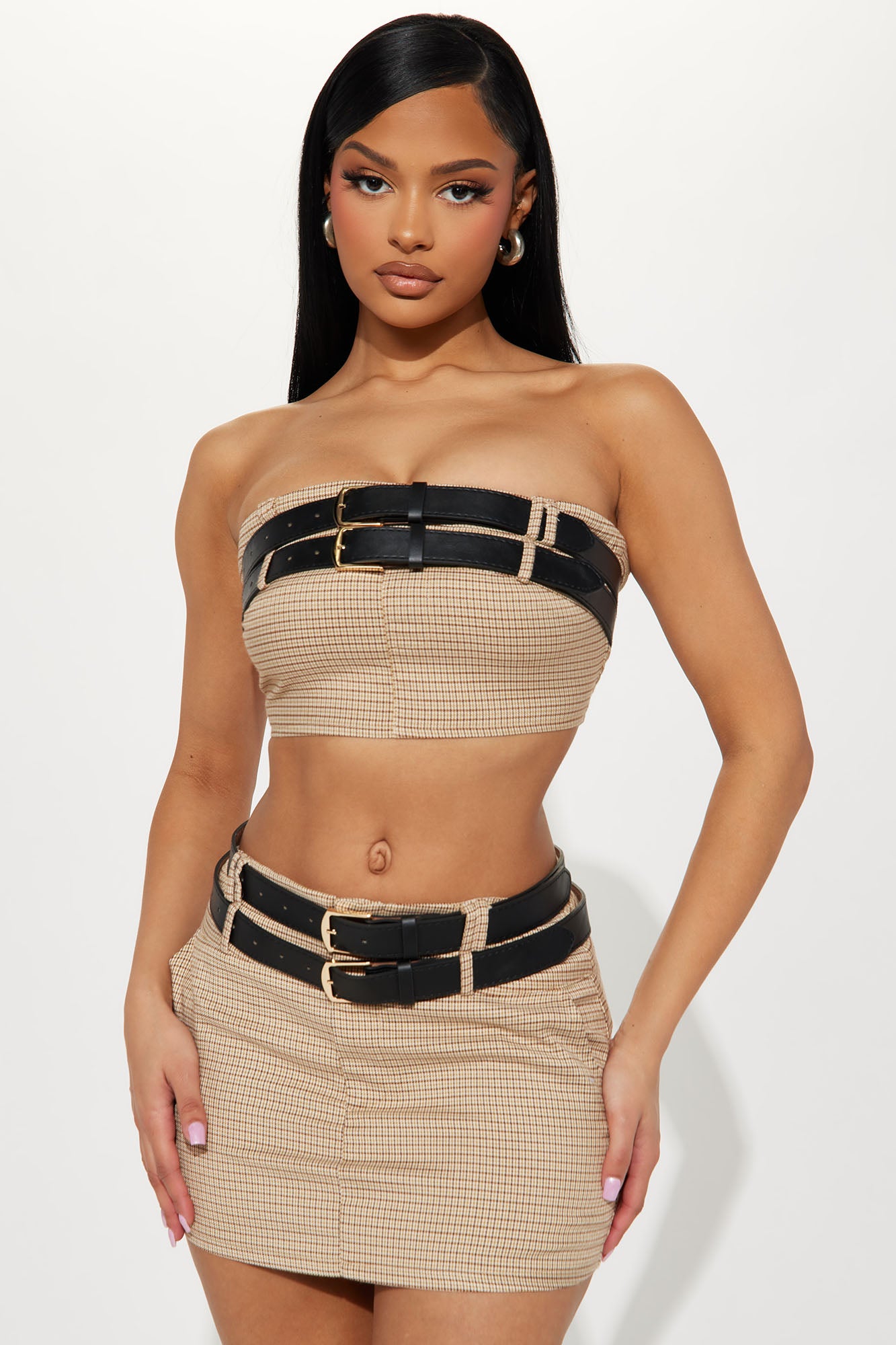 Keep Me In The Loop Skirt Set - Mocha/combo