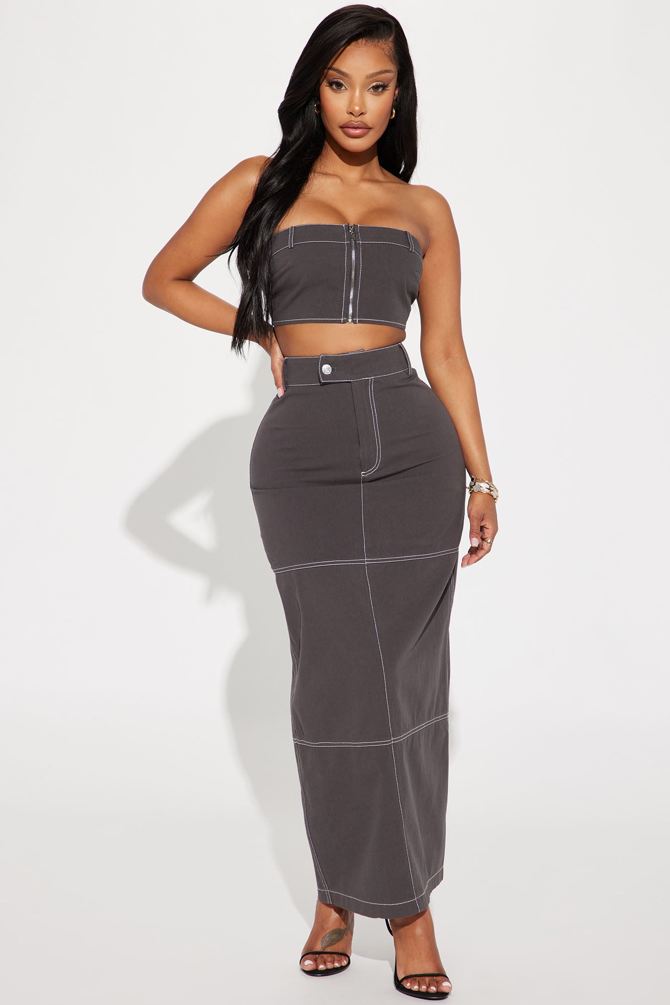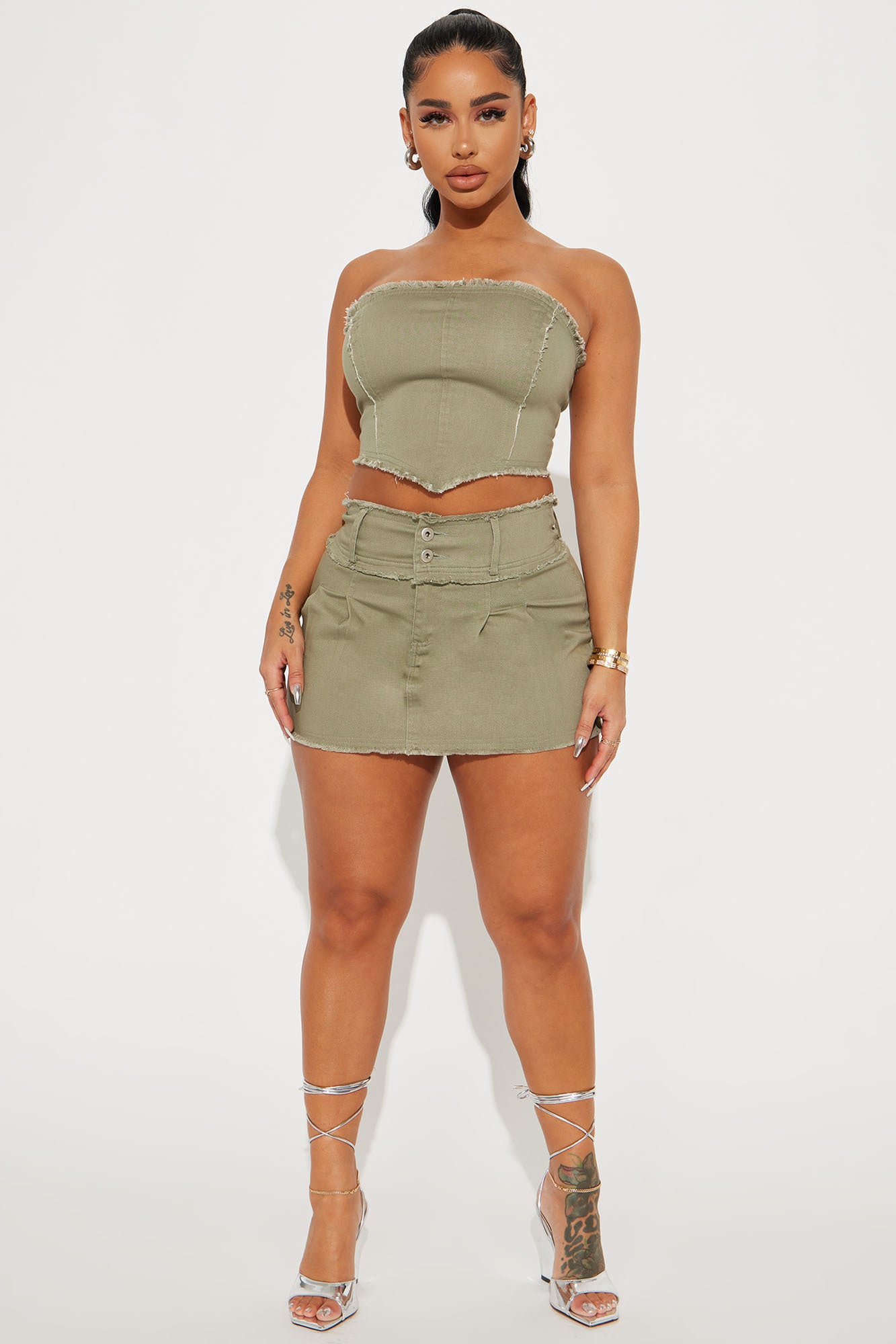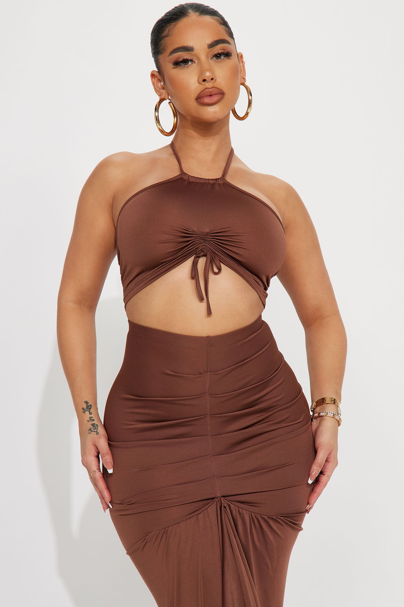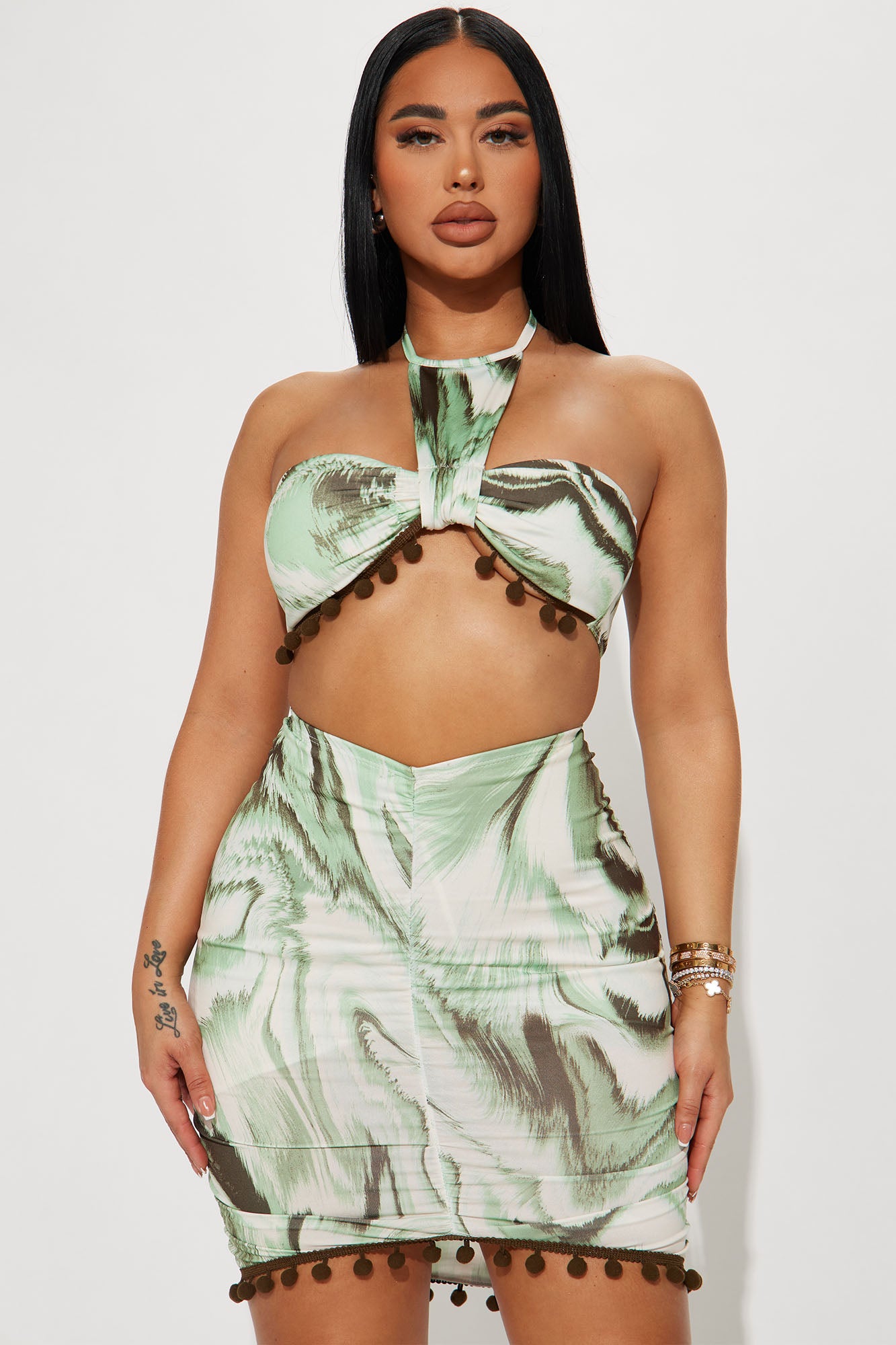 Keep Me In The Loop Skirt Set - Mocha/combo