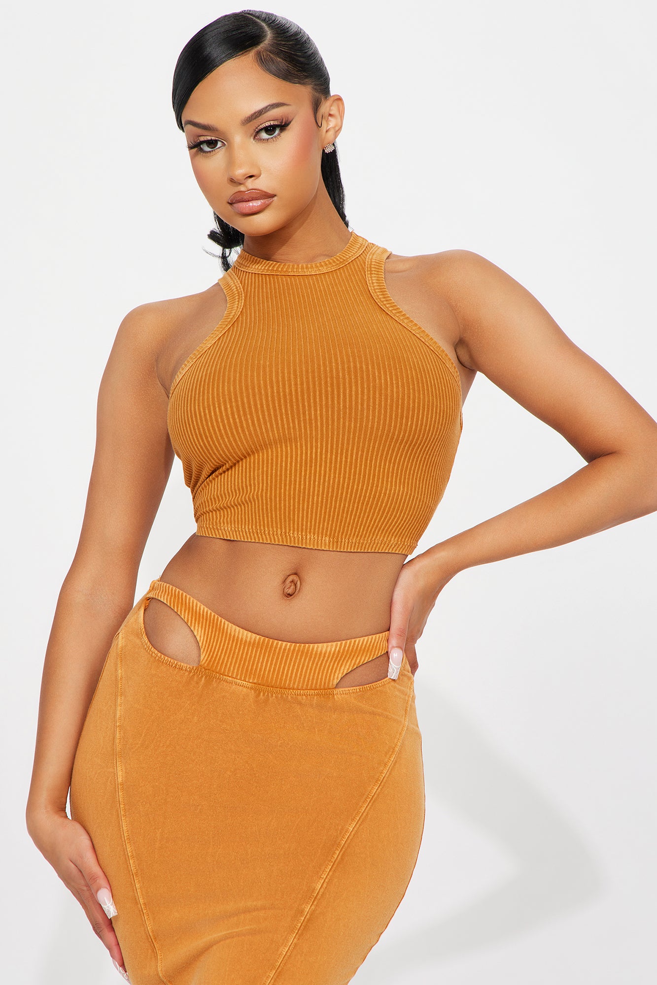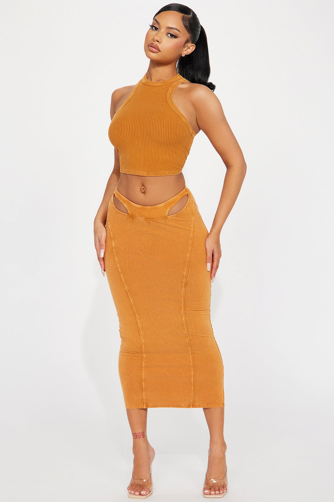 Midnight Boundaries Ribbed Skirt Set - Camel