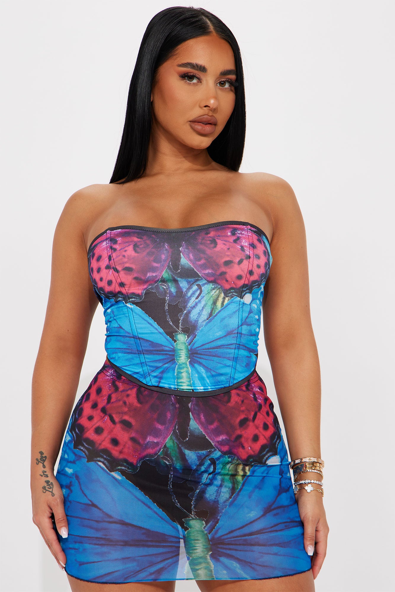 Butterfly Kisses Mesh Skirt Set - Green/combo